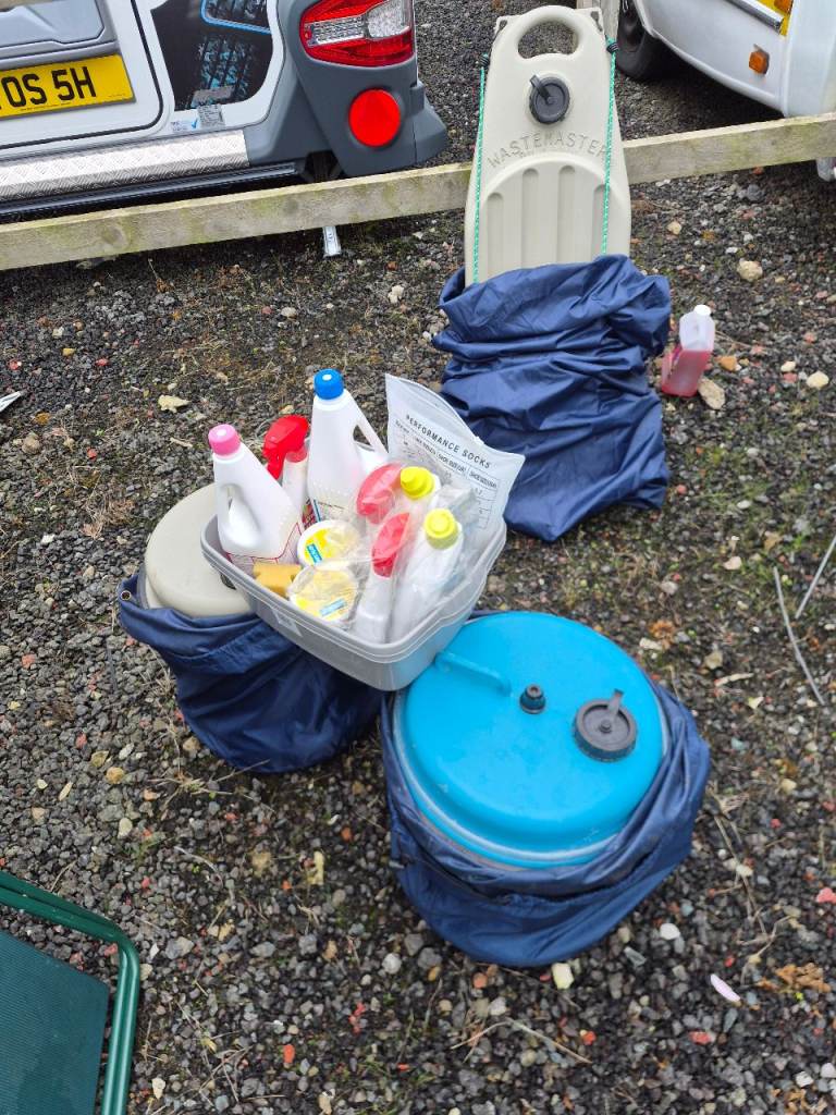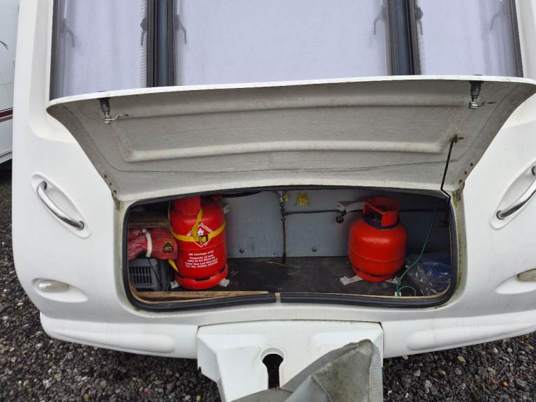 Comes with everything you need to go caravan today:- Two 40L water roller tubs with storage bags, A 40L grey waste water roller tub with storage bag all the water purifying to clean out the water system,an awning 3/4 caravan length and a canopy if you don't want to put up the awning, a cover for the front of the caravan to stop stone chips when pulling it, a new battery and the electric hook up cables two gas tanks one empty one part full oh and a travel TV.