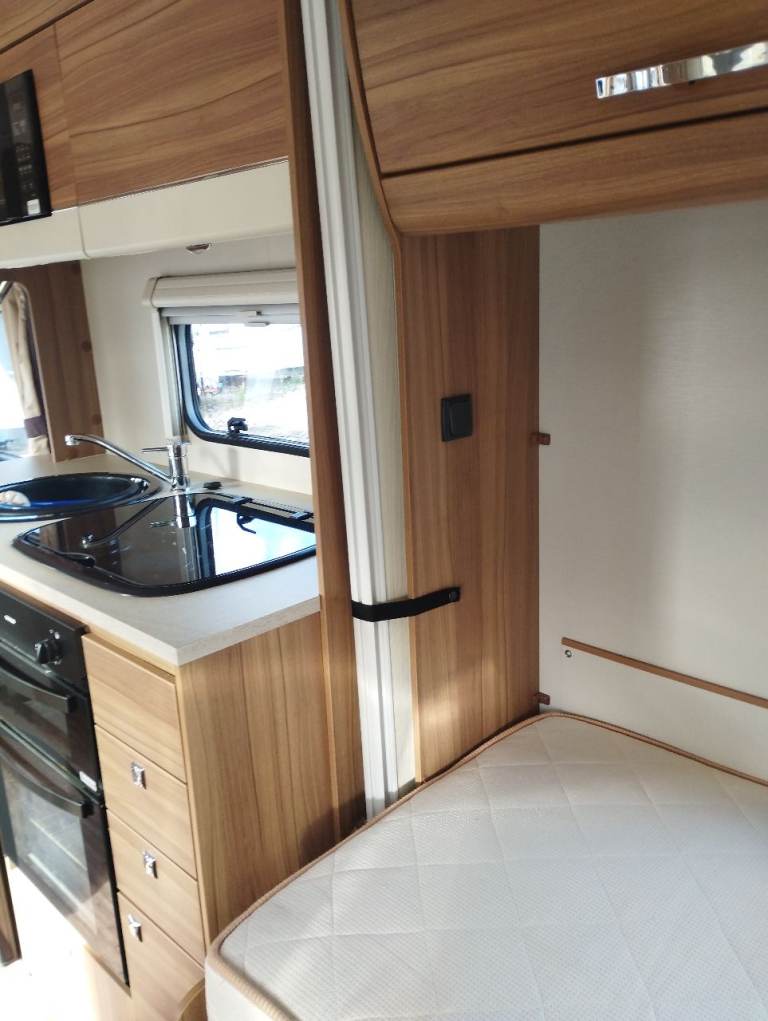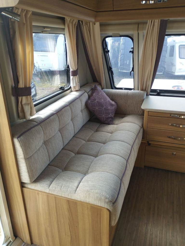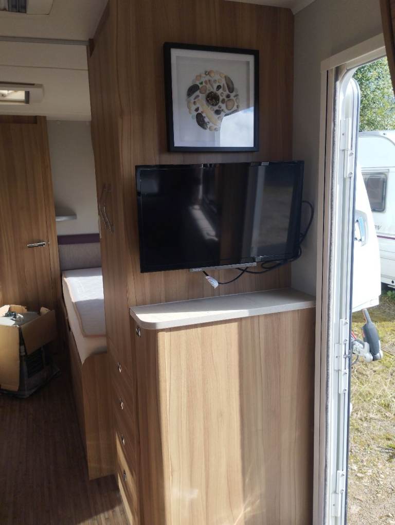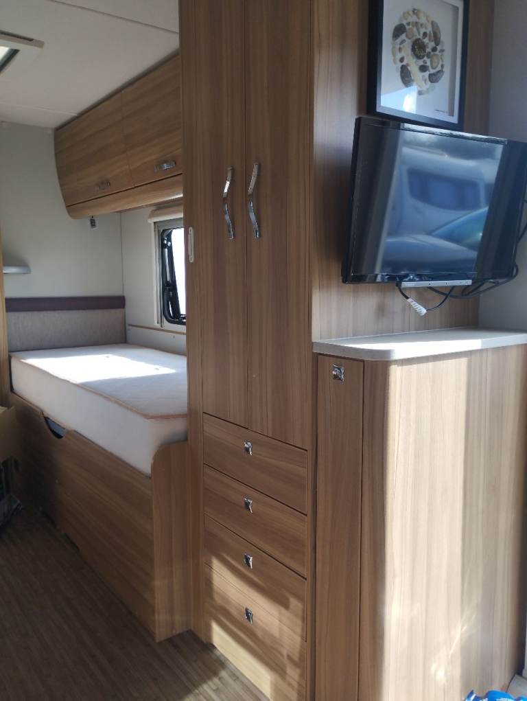 A great family caravan for either touring or a seasonal pitch which we've sadly outgrown. Includes really comfy twin beds and a seating area that converts into a bed, which can be separated by a pullout screen. Bathroom has toilet, sink vanity unit and shower. Kitchen includes gas oven and hob, fridge with a freezer box and microwave. A TV is included in the seating area but there is also a bracket for it so you can watch in bed. In addition to the built in radio/speaker system.