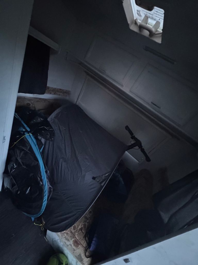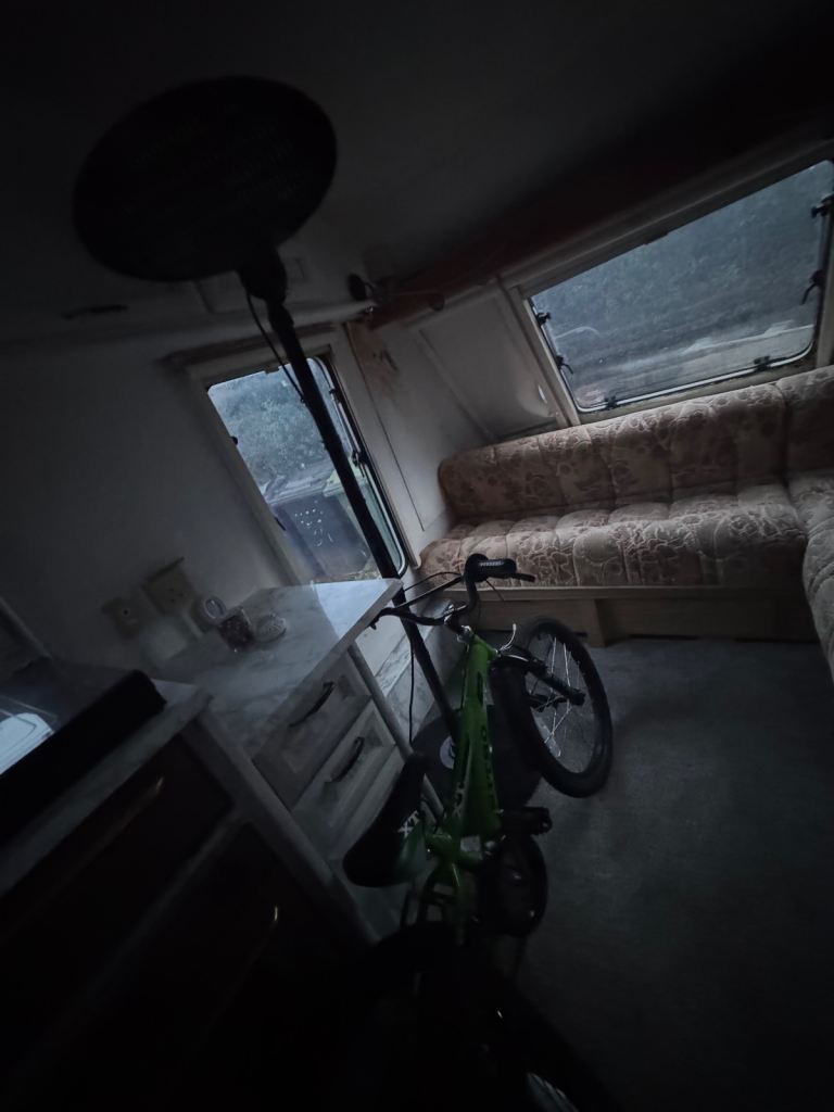 Has a wall divider to unfold so makes a separate room with 2 foldout sofas