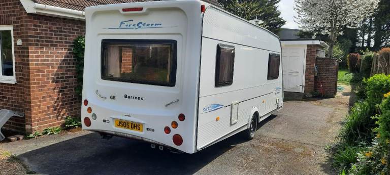 Elddis Firestorm 505. 2006 5 Berth. In good used condition, no damp. Minor repairs done to front window. This price includes 2 awnings (1 large and 1 small), 2 folding tables, 2 door steps, plates, bowls, cups etc.... Hitch lock, water barrel and waste carrier. 2 x gas bottles part used. Electric hook up lead. This caravan is hitch and go. CRiS Registered. Priced to sell.