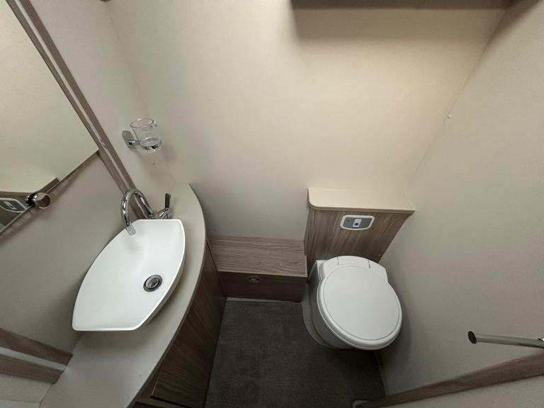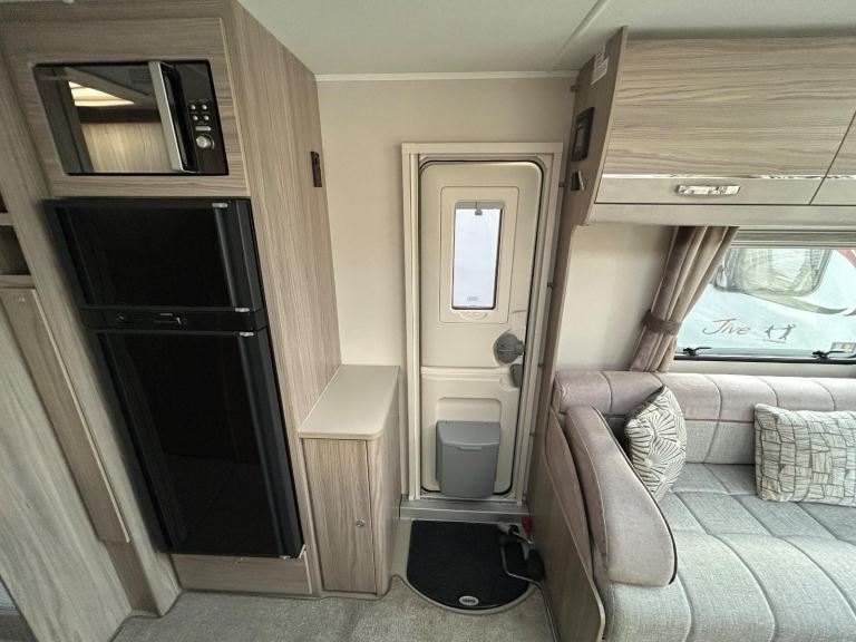 Full rear bedroom featuring a transverse island bed with adjoining wardrobes - central dressing room incorporating individual shower cubicle, toilet and vanity unit - central offside kitchen benefitting from a larder fridge - 2 x 6' singles / double / bed / dinette ate the front - without doubt this model has a 5 star apartment feel , a huge specification and contemporary soft furnishings - HARDLY EVER USED AND IN IMMACULATE CONDITION THROUGHOUT !