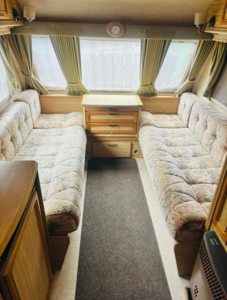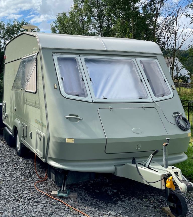 Ex300 (1997 - 2 birth) Lightweight easy to tow, listed as spares or repair due to severe weather last few months and caravan leaked through rear side above kitchen. Easy fix if you can re-seal this on external roof above kitchen. Paintwork immaculate and flawless. Fridge Freezer, toilet and lights work. Shower and heating never used or tested. Oven & Hob removed. Collection from Ulverston, Cumbria. Selling without leisure battery or hook up lead.