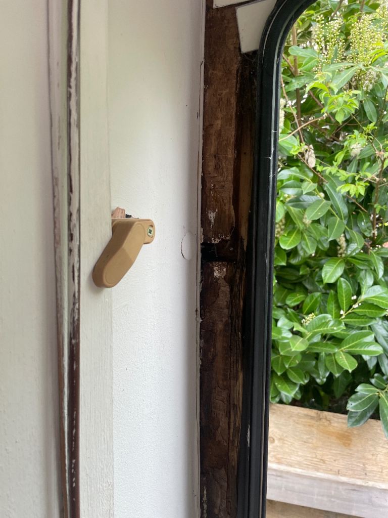 The cupboards have all been painted but could do with a touch up and there is some repair needed to the door frame as shown but we’ve used it like this absolutely fine with no issues.