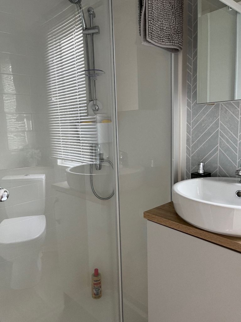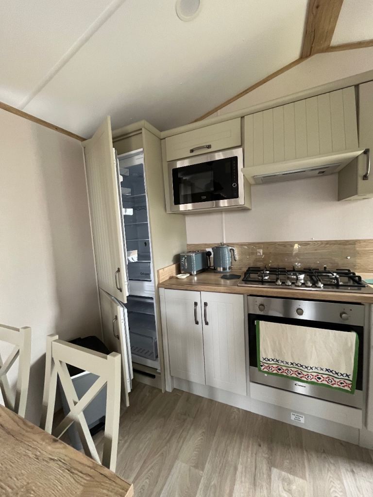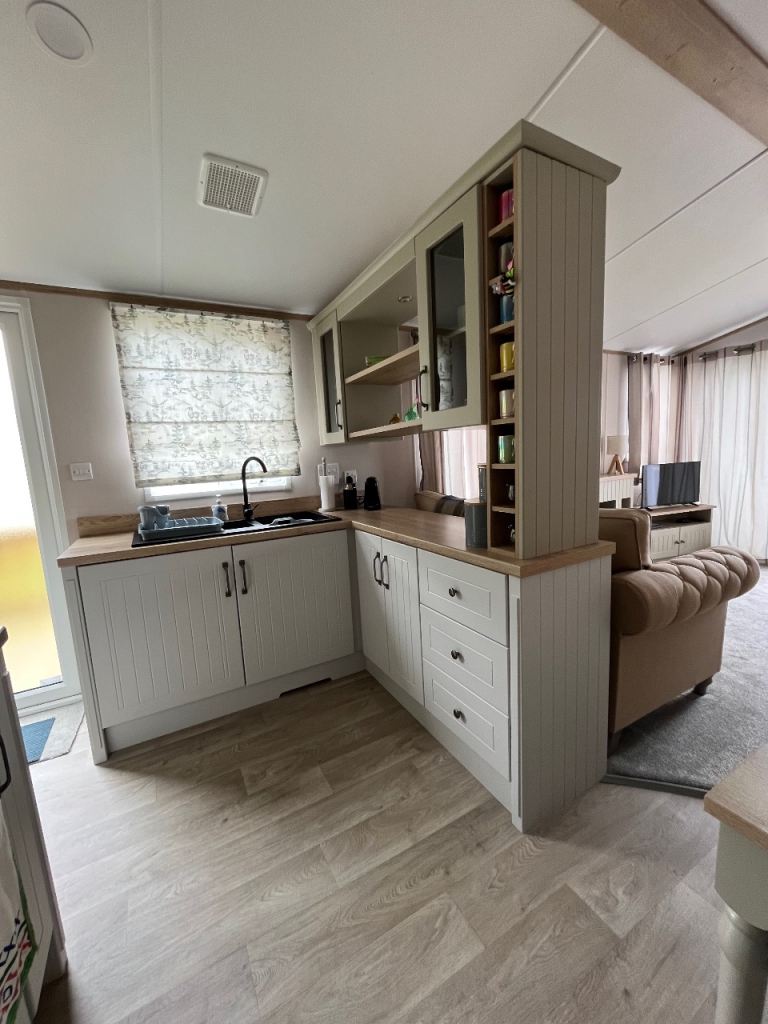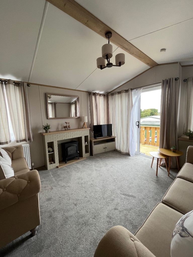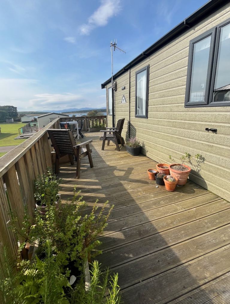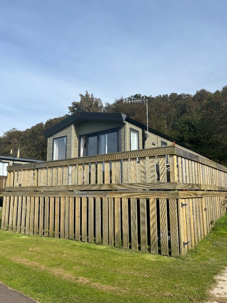 Underneath lodge area enclosed, matching the decking and providing extra storage. Deck furniture in good condition offered as part of sale. Generous parking space. Various excellent condition household items also offered as part of sale: smart television, vacuum cleaner, kitchen items.