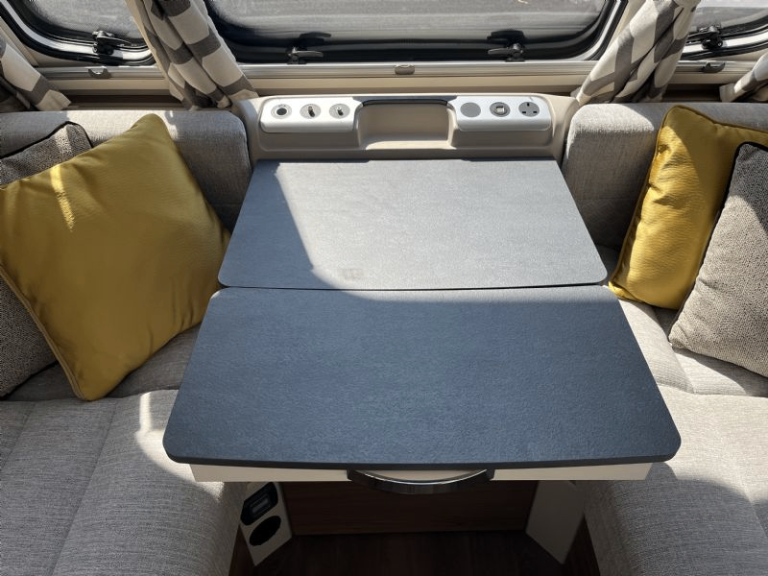- Spacious front lounge with twin bench seating transforming into a large double bed