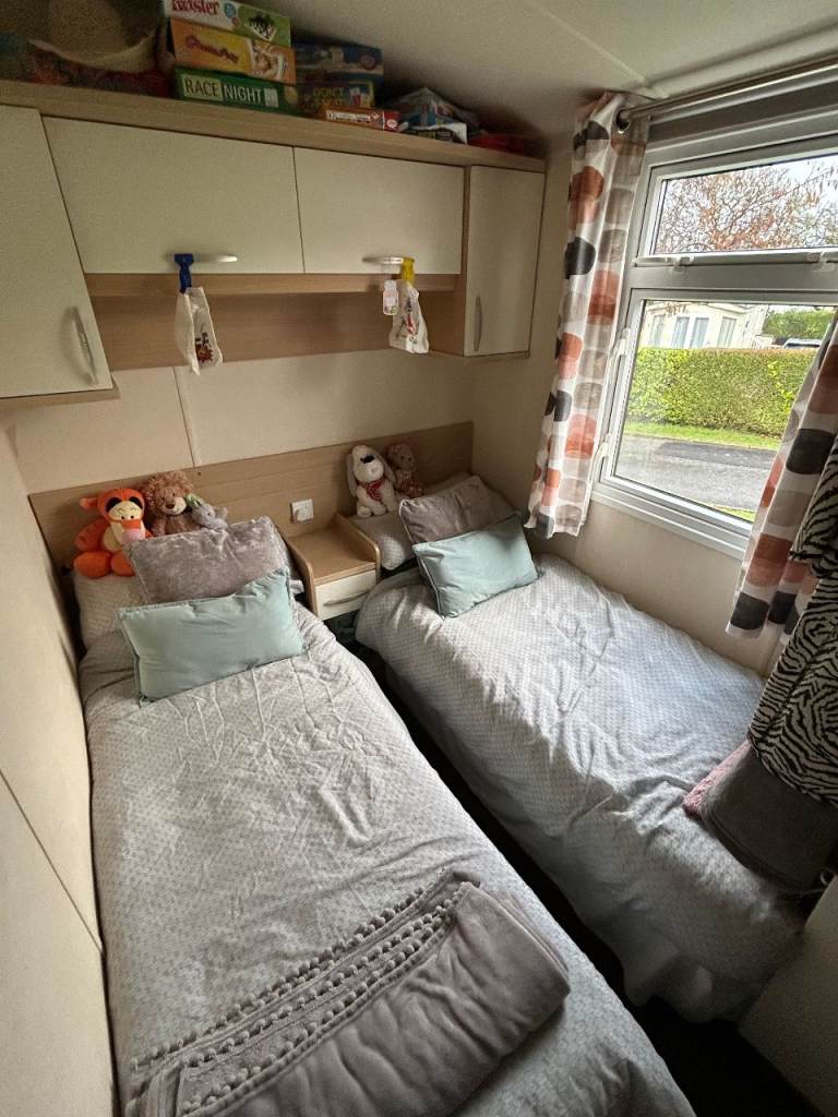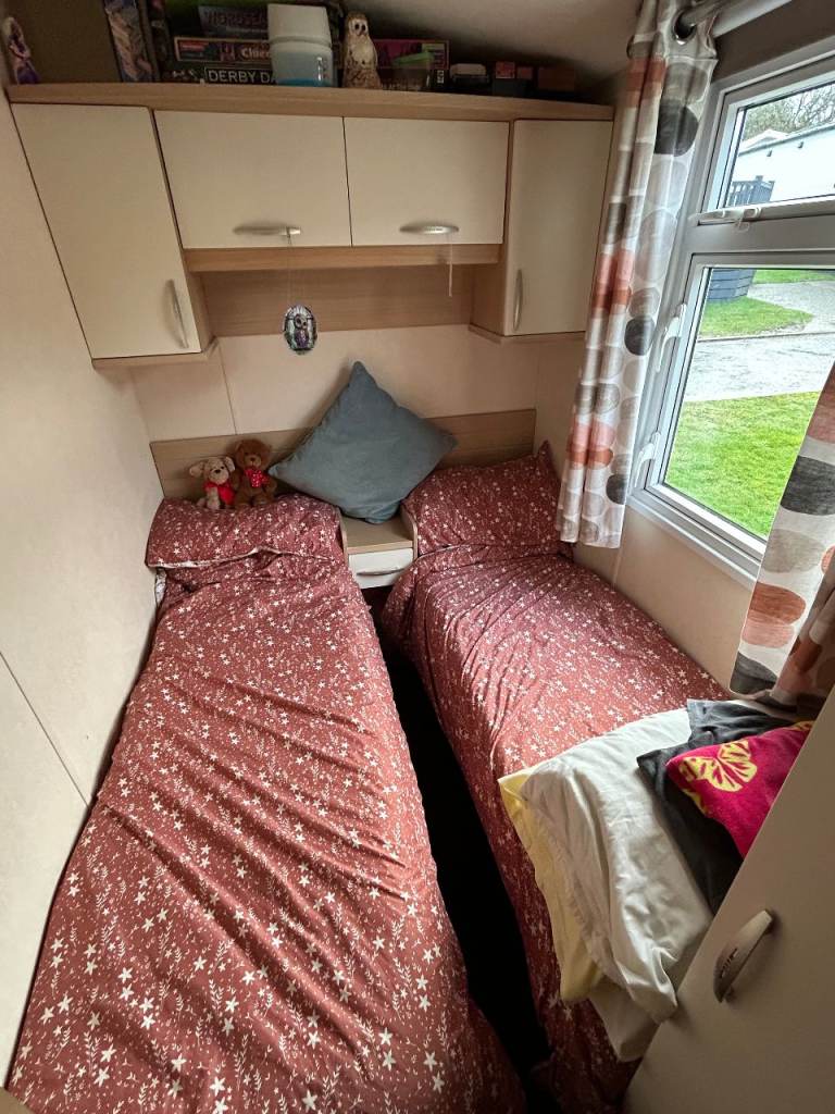 the caravan has three bedrooms one double and two singles plus there's a double pull out bed in the living room area making it ideal for extra room if needed.