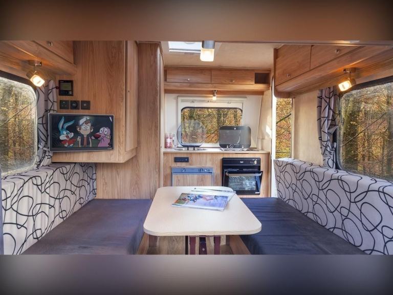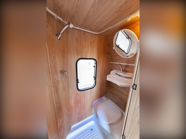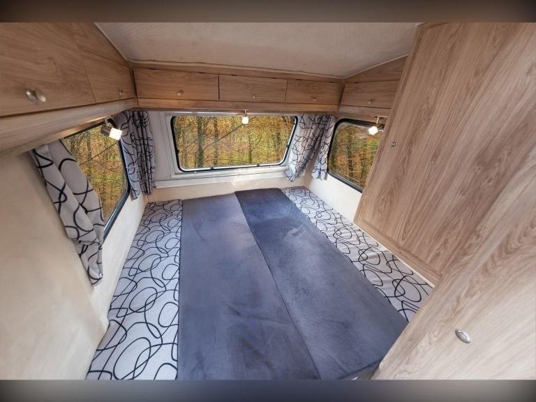 Comes with a Truma Combi Bolier for hot water and blown air heating, AKS Stabiliser, Oven and Grill, 2 Burner Hob, 3 Way Fridge, Bathroom with Shower, two twin beds or one large double, spacious bottlebox., Ebay Features Include: 2 x fixed side windows, 240v electrics system & transformer, al-ko aks3004 stabiliser, awning light, bathroom tap & tip-up sink, bulkhead mounted gas regulator, cassette fly-net/blinds for front & rear windows, curtains, dometic 2-burner gas hob, dometic 3-way 60 litre fridge, dometic cassette toilet, dometic roof vent with flyscreen & blind, dometic sink & tap, double plug socket with 2 x usb ports, externally fed water system, front & side led marker lights, front storage box w/spare wheel & gas bottle mount, galvanised 750kg braked chassis, led interior lights, opening front rear & toilet windows, overhead lockers, shower unit & shower tray, solar panel, thetford gas oven & grill, truma combi4 blown air heating & hot water system