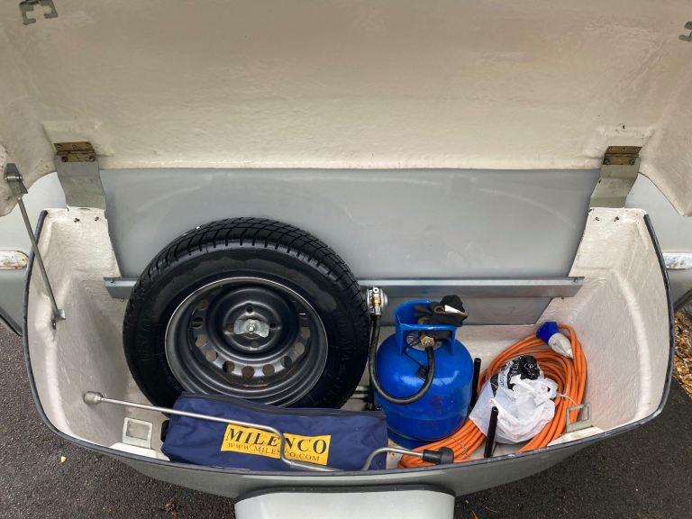 Comes with water container, waste water container, 16 amp cable, spare wheel and gas bottle.