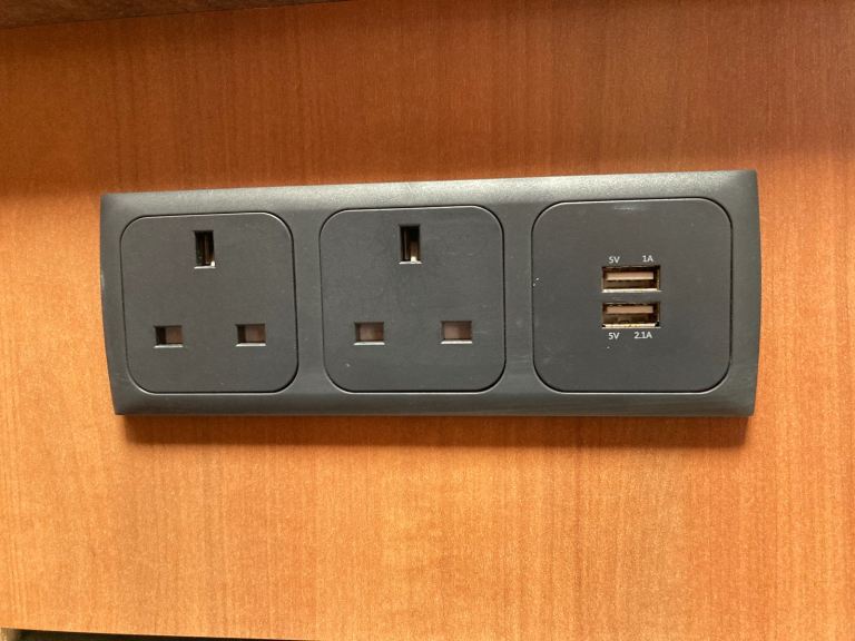 Toilet, shower, sink, cooker, hob, fridge, blown air heating.