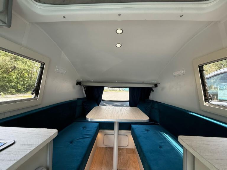 Your next adventure starts with the Go Pod Going III – where freedom meets function in one beautifully built micro caravan. Features Include: cassette toilet, 2-burner hob, fridge, hob, side kitchen, sink/drainer, 240v hookup, awning light, rear steady legs