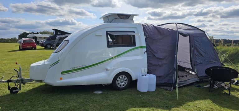 Go-Pod mini caravan for 2 people that gives you more comfort than a tent but is much smaller than a normal caravan.
