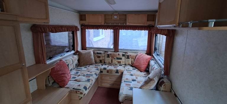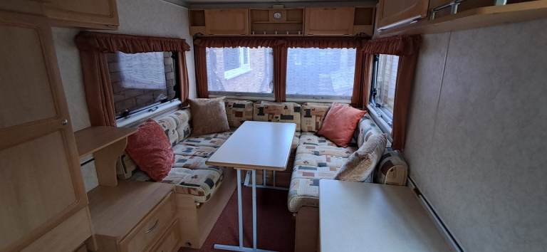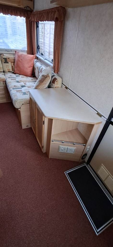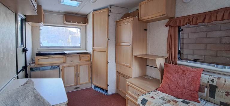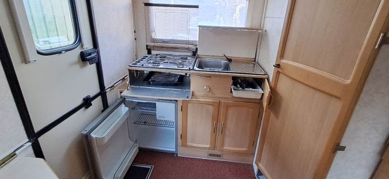 Kitchenette with 3-way fridge and 4 burner hob.
