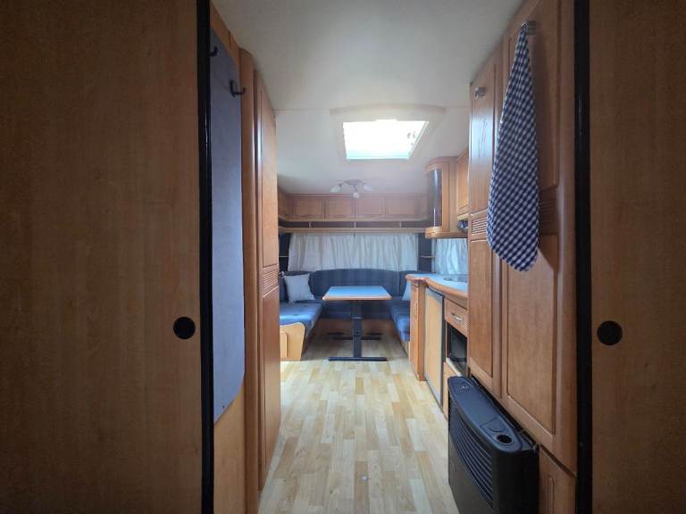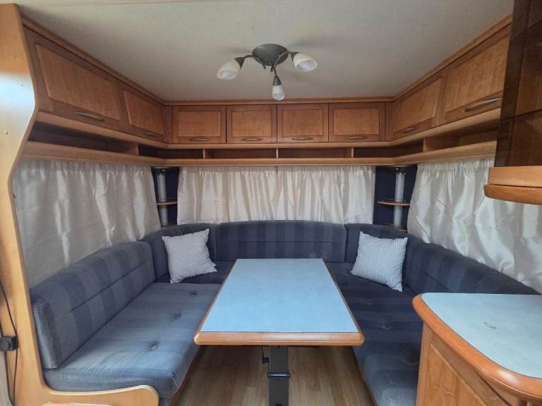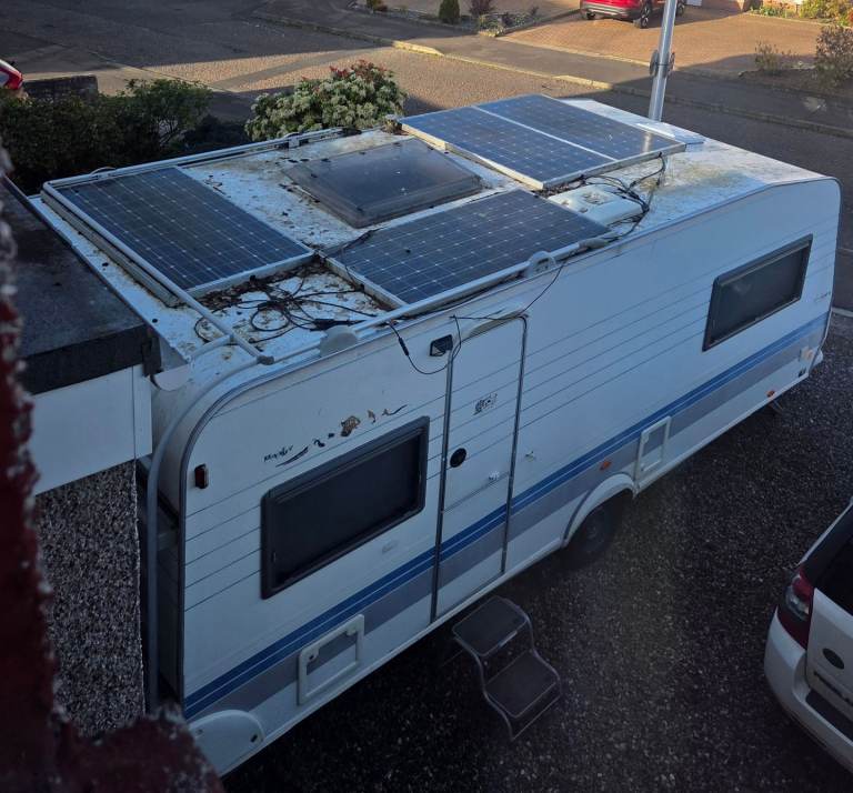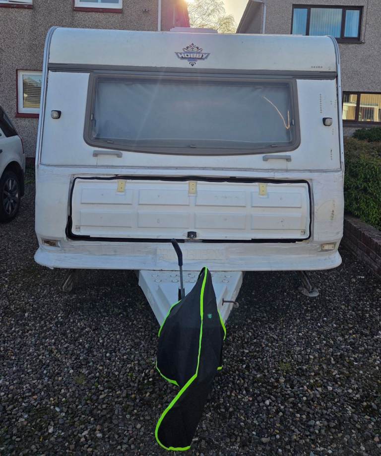 Hobby Exclusive 2002 . 4 berth fixed bed . We bought this to do up . Fixed all issues inside , but not enough time anymore . Needs some more tlc . Have had 2 holidays in it . £2000 Worth of solar panels on roof . Brand new leisure battery & water heater .