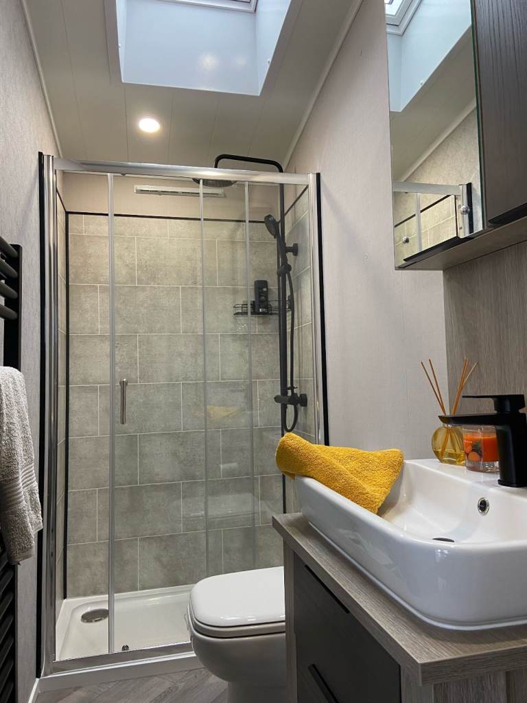 1 main family bathroom with rainfall shower and 1 ensuite with similar layout.