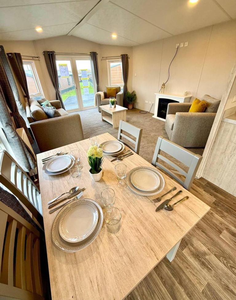 Experience coastal luxury with The Langford, a beautifully crafted holiday home designed to feel effortlessly spacious, modern and refined. Perfectly suited to the breathtaking surroundings of North Devon, this is your sanctuary by the sea. Step inside and enjoy a bright, contemporary open-plan layout, featuring a large U-shaped kitchen with integrated appliances, including a 70/30 fridge freezer. The full-size bath with overhead shower brings a touch of everyday luxury, ideal after long coastal walks or beach days. The generous master bedroom offers exceptional wardrobe and drawer space, perfect for those who love to settle in with a full holiday wardrobe. Beautifully designed, superbly finished and exceptional value without compromising on quality or style, The Langford is a holiday home that truly elevates every stay.
