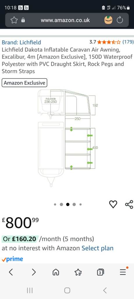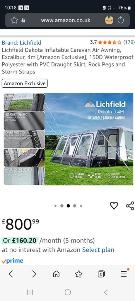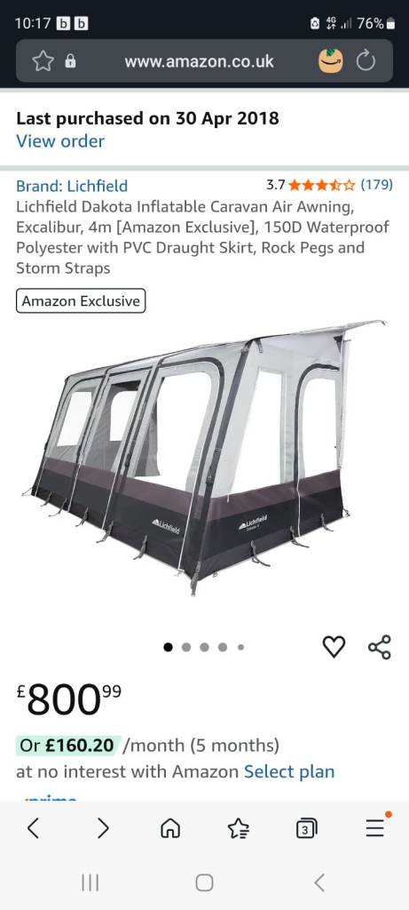 Lichfield dakota 4 awning ,not been used that much ,4 meters wide ,all details available on amazon ,good condition no rips or tears comes with pump ,straps etc