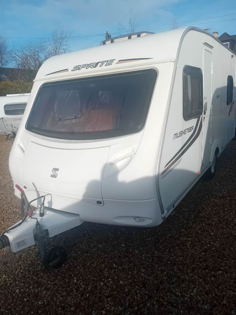 Sprite musketeer 5 berth touring caravan no damp or issues ready to go its very clean tidy van Has front and rear seating areas both turn into double beds + bunk bed has good size toilet and shower compartment 3 way fridge freezer full size cooker blinds curtains and fly nets has motor mover £5150