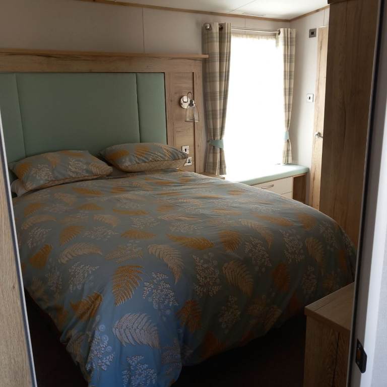The main bedroom has a king size, gaslift bed with a comfortable, good quality mattress.