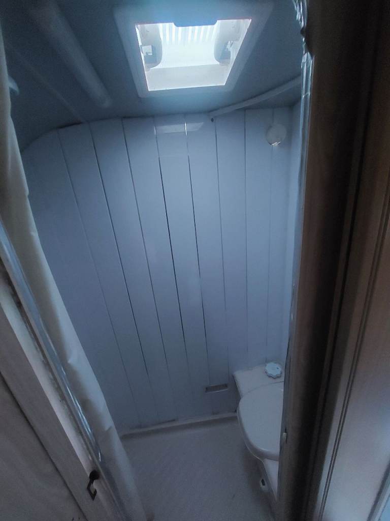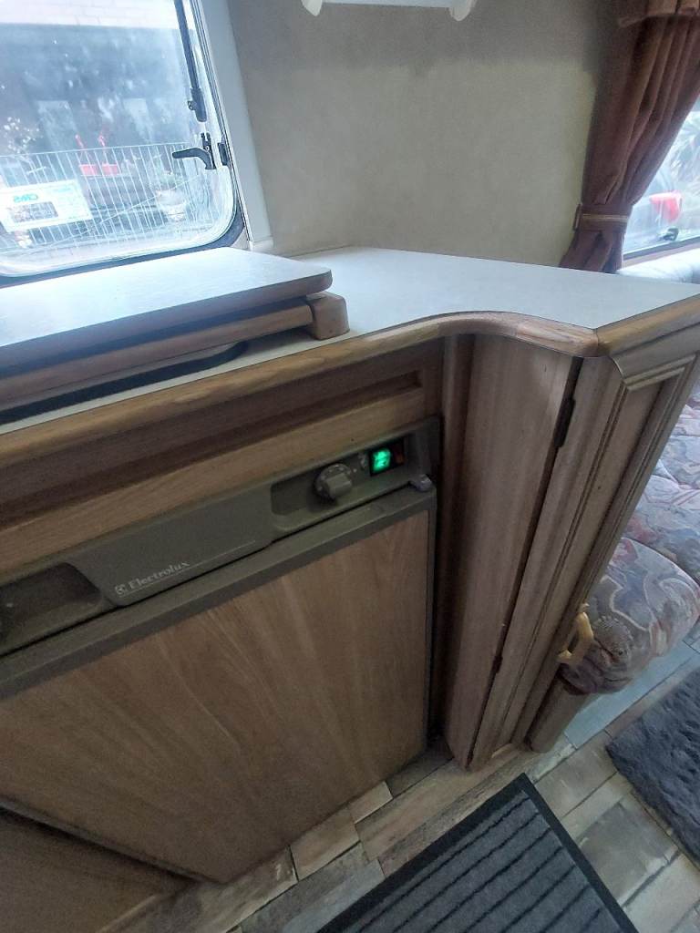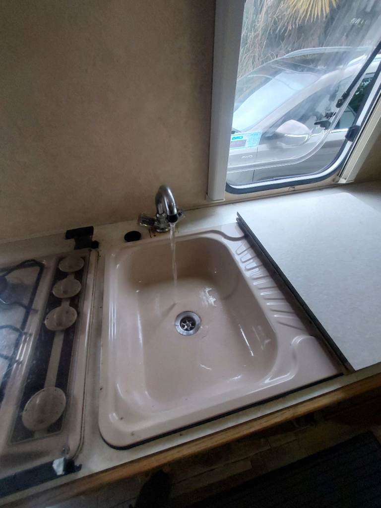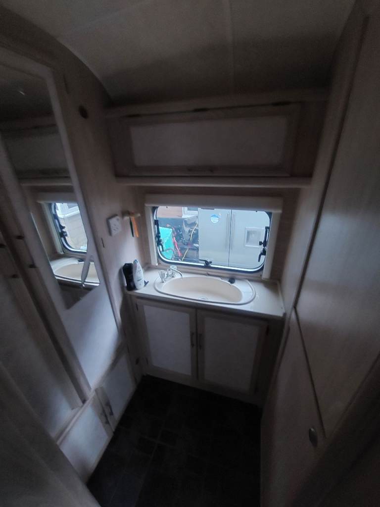 4 birth caravan. Basin in the end bedroom. Shower. Toilet in the bathroom. Full size cooker. Hobs. Grill. Fridge freezer. Sink.