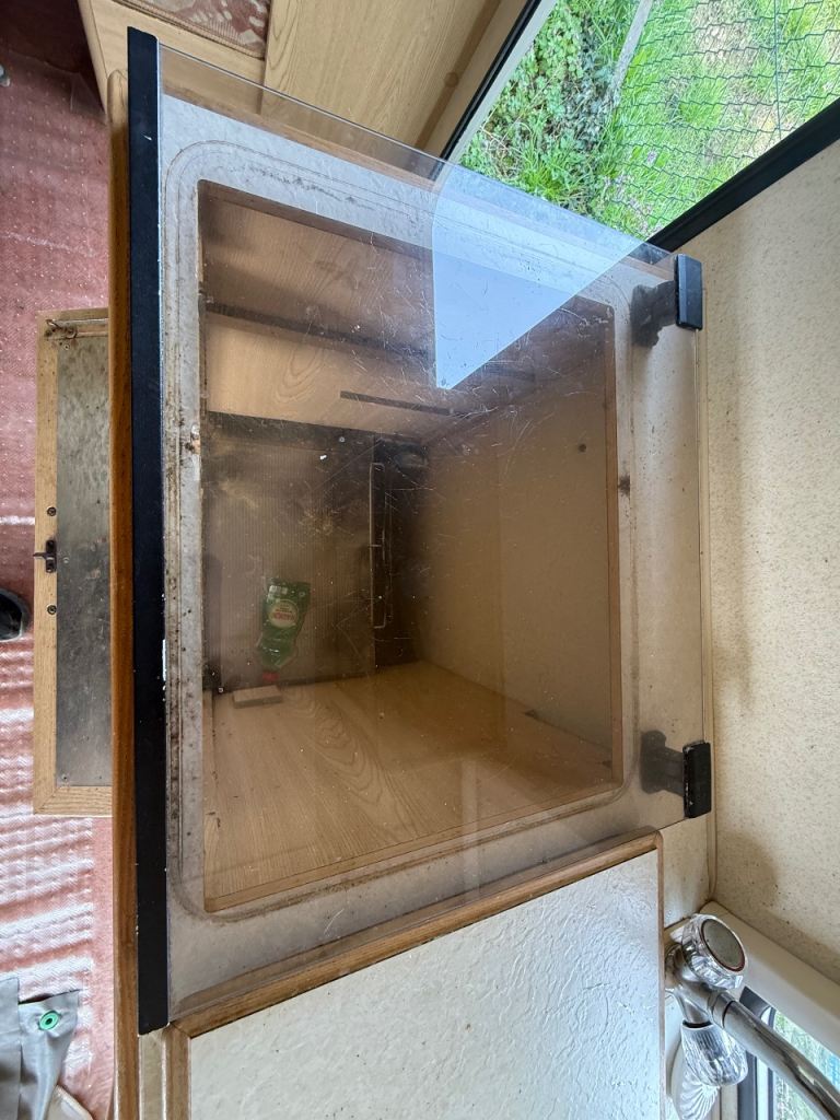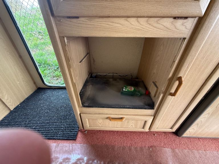 The cooker and hob have been removed as the where leaking gas and the heater cover has been removed as I was going to replace heater but didn’t want to take old one out straight away as leave the hole in bottom of caravan there are a few makes and wear and tear there is a crack on near side rear as shown in picture and the cover has broken off the water inlet there is a hole new inlet just not had chance to fit