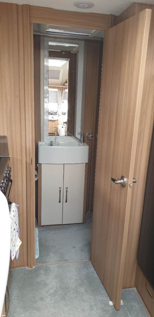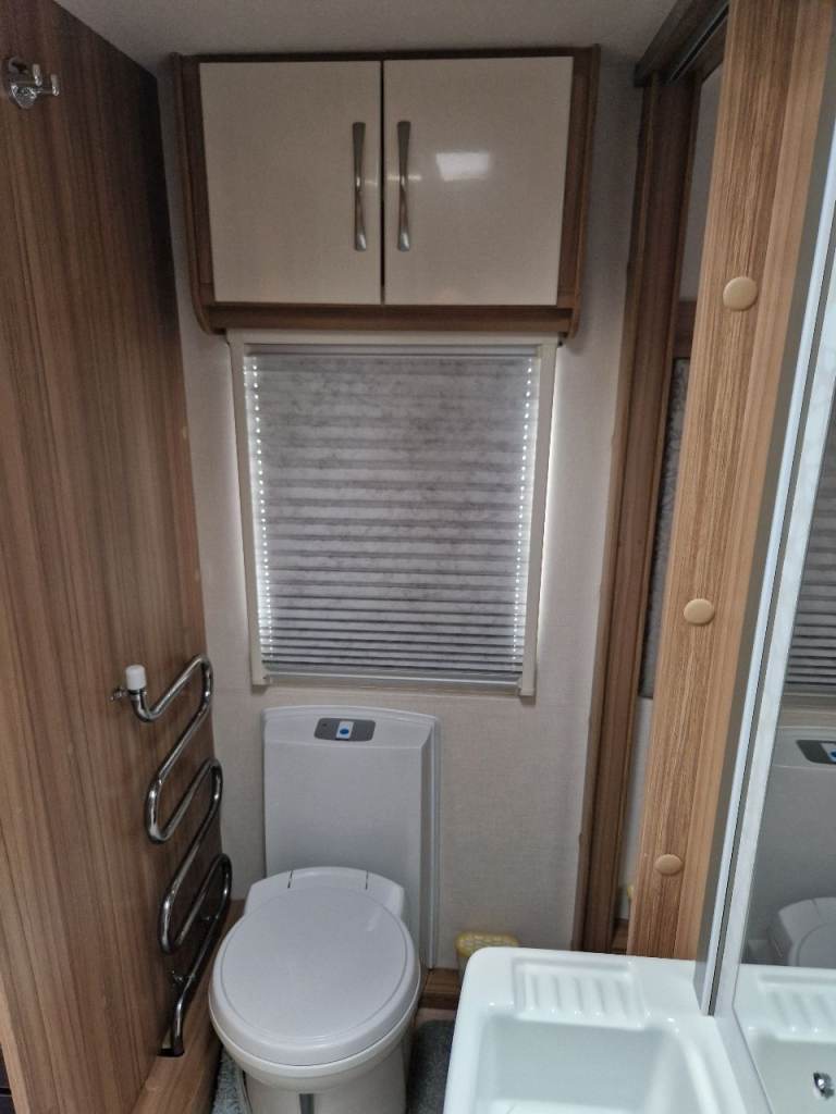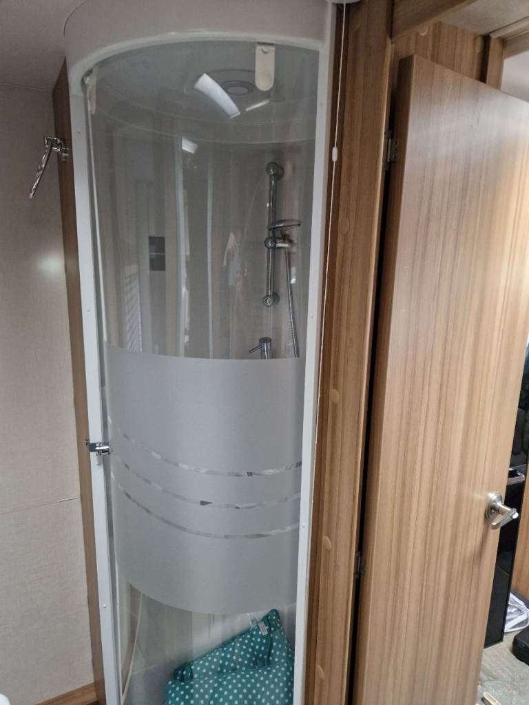 The bathroom has a cassette toilet and a vanity unit, Shower has only been used once (we usually stay where they have facilities)