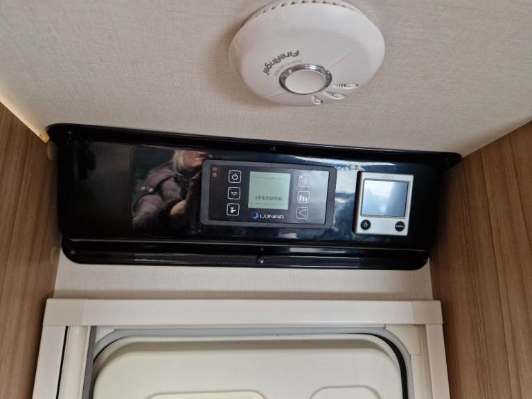 The control panel for the heating water pump, lights etc is above the door and easy to use.