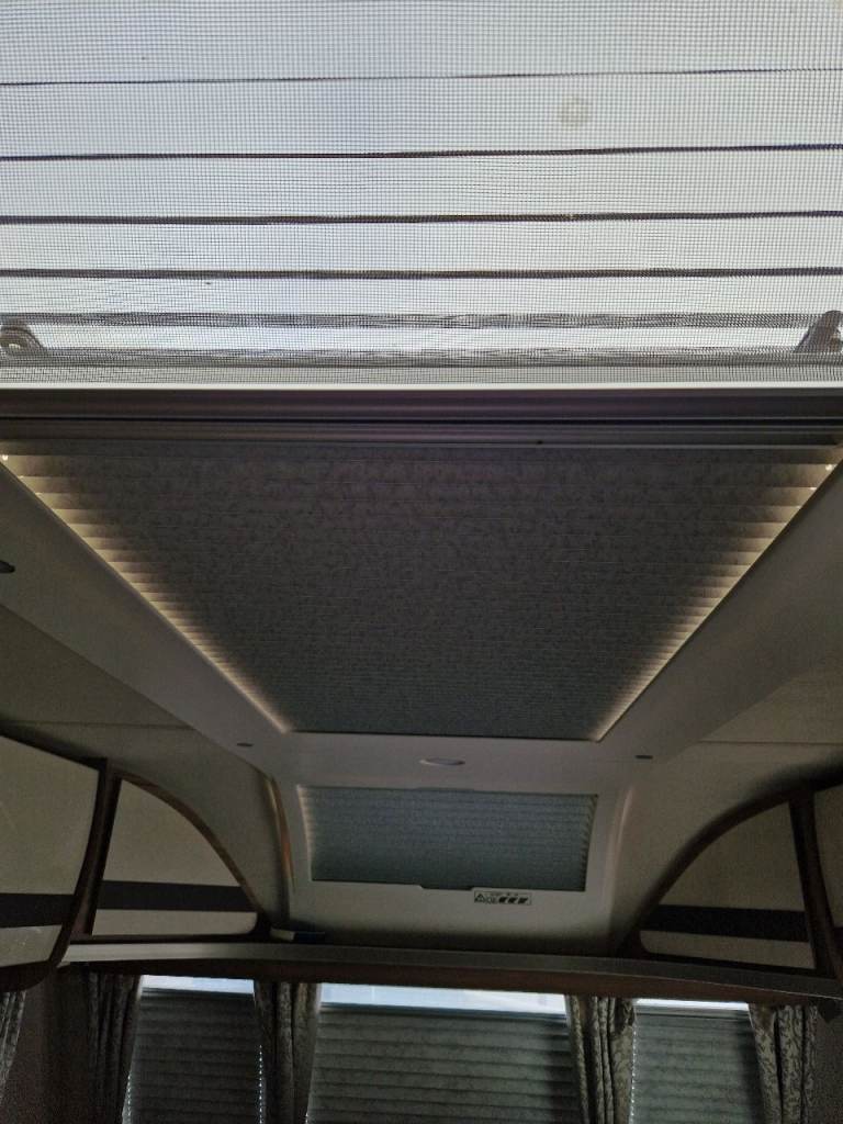 Large skylight in the lounge area, and bedroom to give good light and ventilation when the weather is hot.