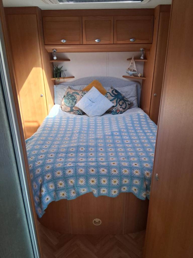 5 Berth consisting of bedroom with fixed island bed and seating area which makes up a large bed that would sleep three.