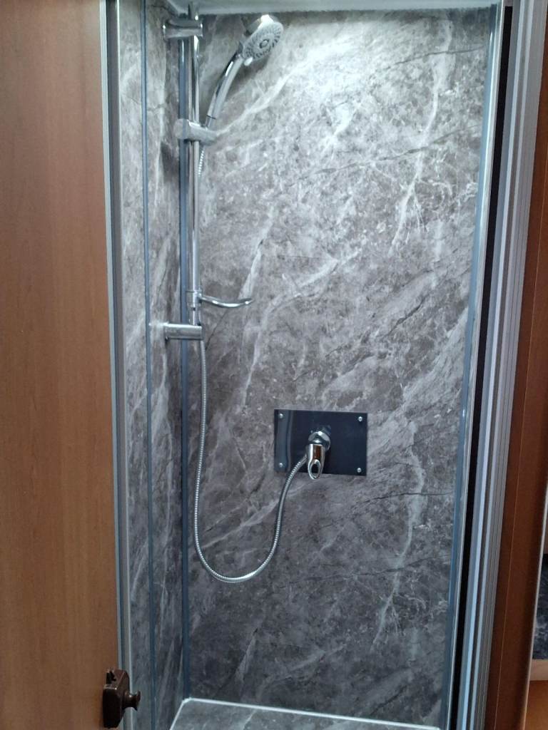Mid Bathroom with toilet and sink and separate Mid shower enclosure. (we have only used the shower as a cupboard)