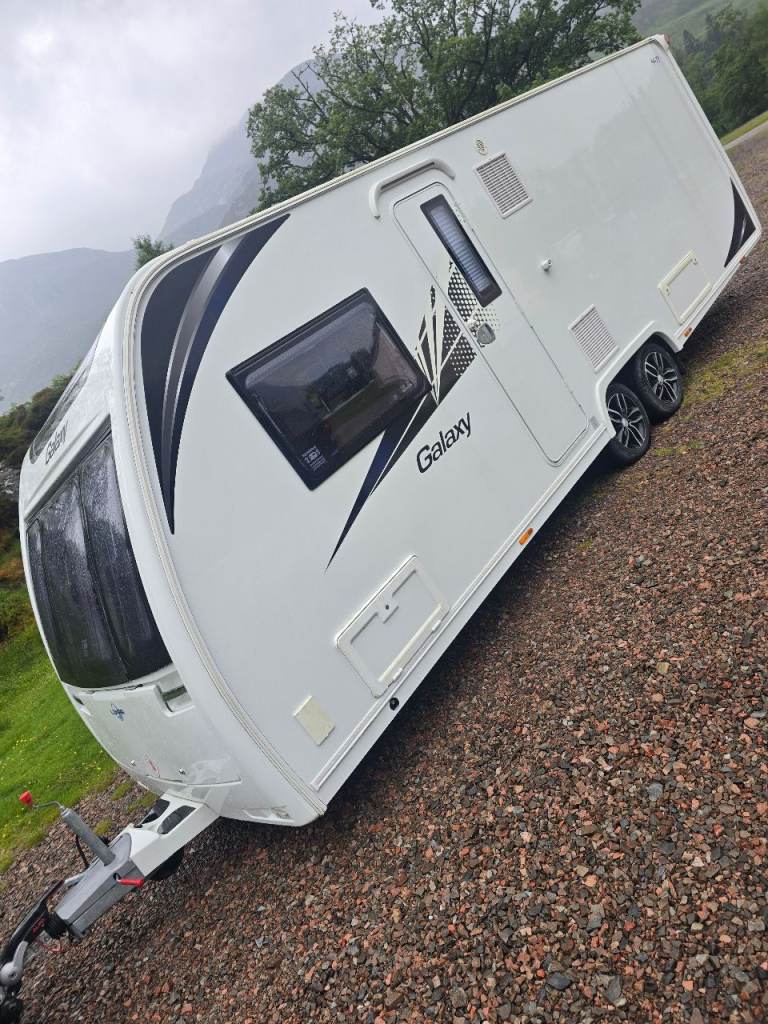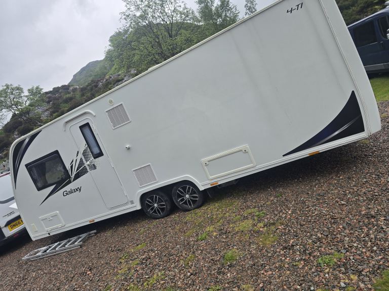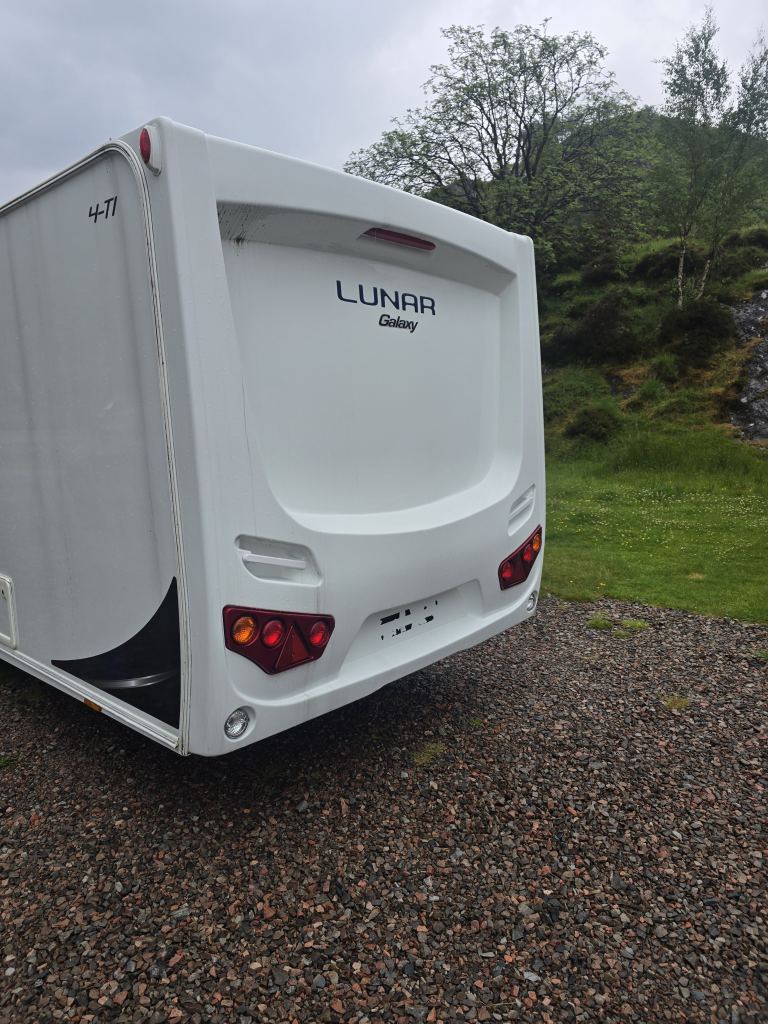 2017/18 lunar galaxy 4 berth fixed transverse bed front seating also turns to double bed end cassette toilet with shower full size fridge with small freezer full size cooker with electric option also build in tv brackets microwave awning water tanks step gas bottle all paper work snd keys twin axle no motor mover lovely condition few age marks nothing major delivery can be arranged local to fort william only selling as need 6 berth now no timewasters please