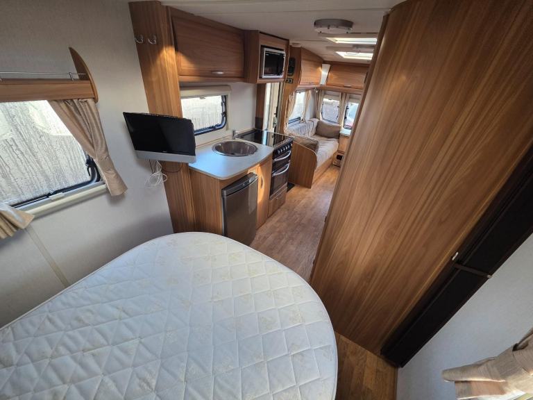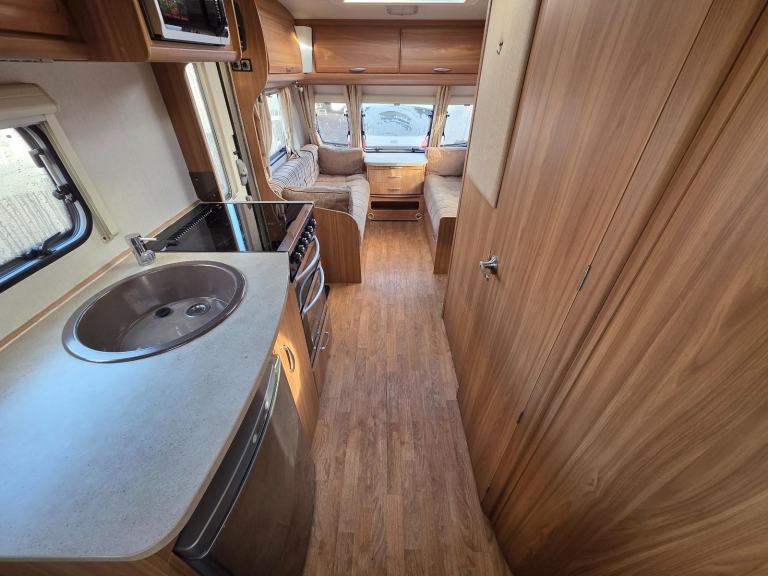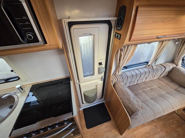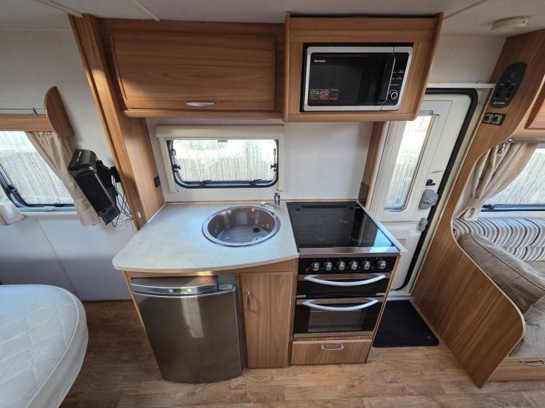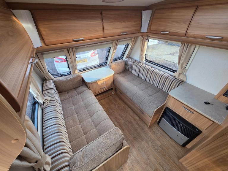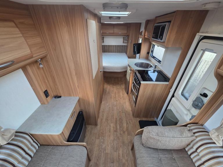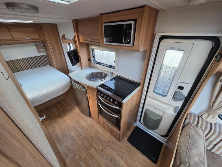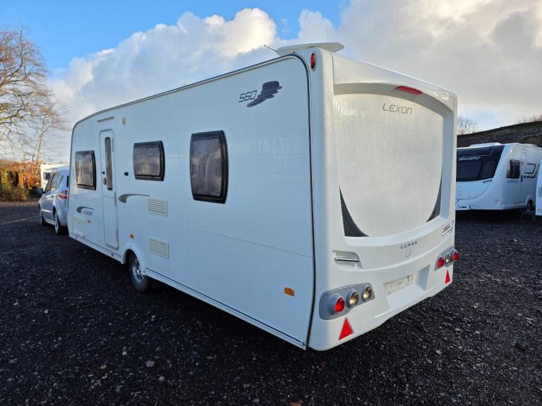 Lunar Lexon 560, 4 berth 2011 caravan, in lovely Condition inside and out. This caravan is fully ready to take camping, it has lots of features and extras what you would expect from a high spec caravan such as this. It includes: hot and cold water, full central heating, full screens and blinds, full oven and grill, three-way fridge/freezer, 240–12 V electricity, HEKI rooflight, Alko Antisway towbar and much more.This caravan comes with a full