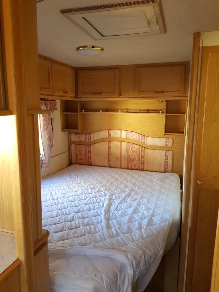 Luner lexon eb,2001 4 berth fixed berth,the caravan has curtains,fly nets and blinds,blow air heating,full fridge,full cooker,shower and cassette toilet,the caravan has a fixed bed and comes with water and waste barrels,hook up lead,leisure battery,gas bottle,spare wheel,outside step,motor mover,paperwork and keys.