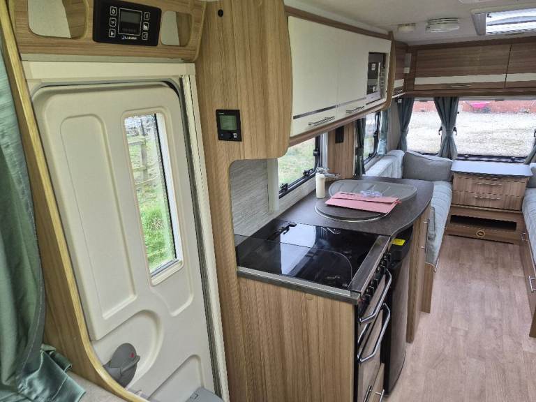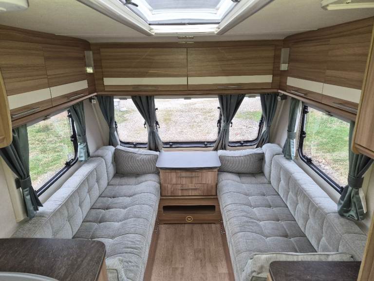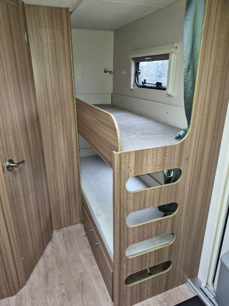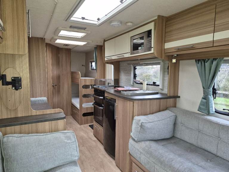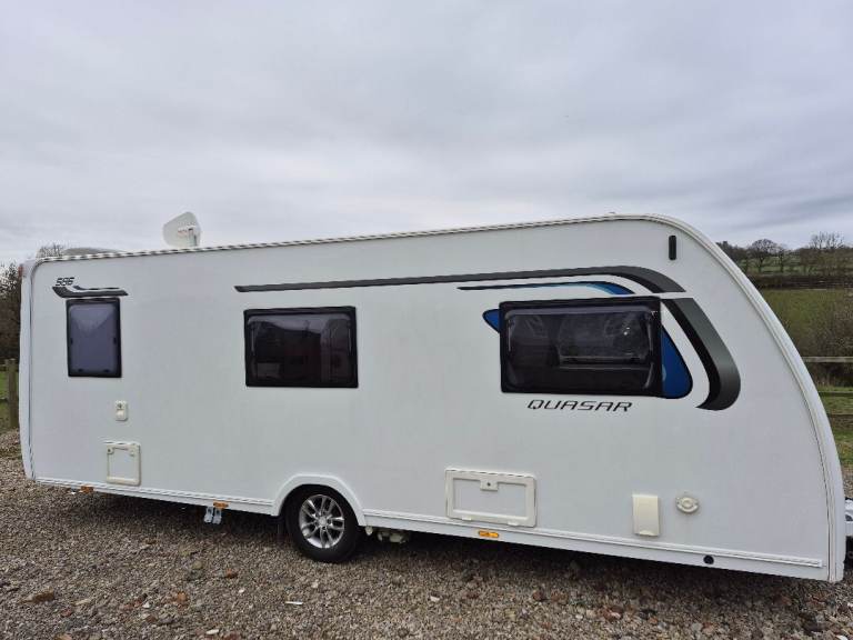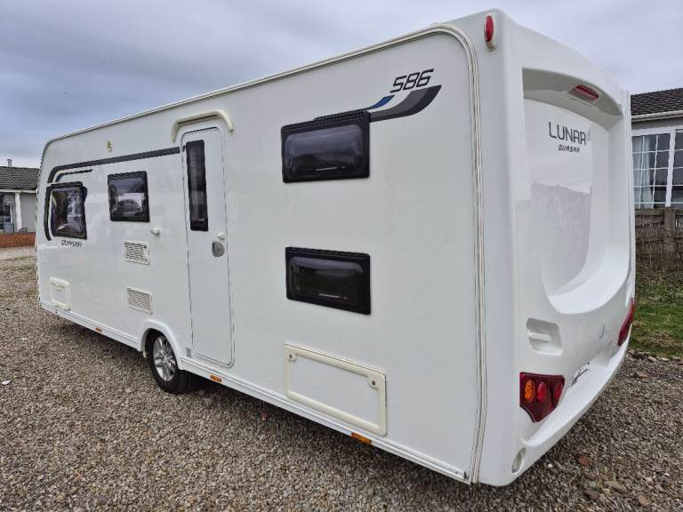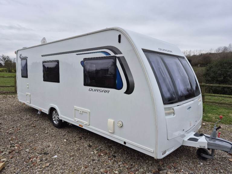 Lunar Quasar caravan 2016 in excellent condition 6 berth with fixed bunk beds hot and cold water shower cassette toilet sink . Truma room central heating. Fridge freezer fitted microwave cooker oven hobs motor mover big skylights alloy wheels blinds fly nets cd player TV aerial alco tiw hitch. Immaculate caravan all handbooks easy clean flooring 20 ft long without tow hitch .
