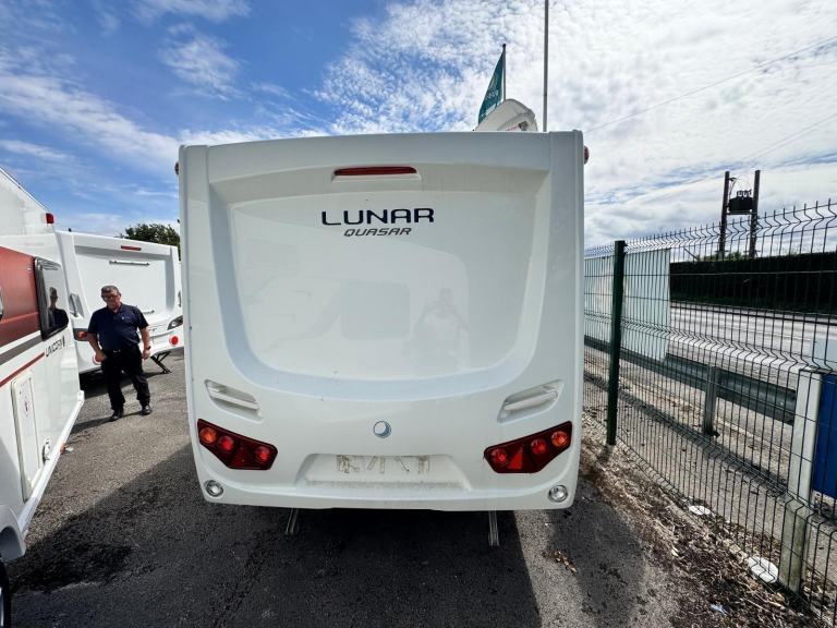 JUST ARRIVED AS A PART EXCHANGE IS THIS EXCELLENT LIGHT WEIGHT LUNAR QUASAR [Website URL removed] HAS COME FROM A PET AND SMOKE FREE HOME AND IS FREE FROM DAMP..THESE CARAVANS OFFER EXCELLENT VALUE FOR MONEY AND COMES WITH THE FOLLOWING GREAT SPECIFICATION..THE LATEST TRUMA COMBI BOILER HEATING/HOT WATER SYSTEM...EXTERNAL GAS BBQ POINT AND MAINS SOCKET, MICROWAVE, LARGE STARGAZER ROOFLIGHT, DIGITAL FRIDGE, ALLOY WHEELS, UPGRADED SOFT FURNISHINGS AND AMBIENT LIGHTING..THIS IS THE BEST DEALER PRICED 2019 QUASAR 462 IN THE U.K...THE PRICE INCLUDES A PRE-DELIVERY SERVICE, CLEAN INSIDE AND OUT, FULL WORKING HANDOVER ON COLLECTION AND A COMPREHENSIVE 6MTH WARRANTY...WE ARE OPEN 7 DAYS FOR VIEWINGS AND DELIVERY CAN BE ARRANGED FOR ONLY £2.00 PER MILE (ONE WAY)