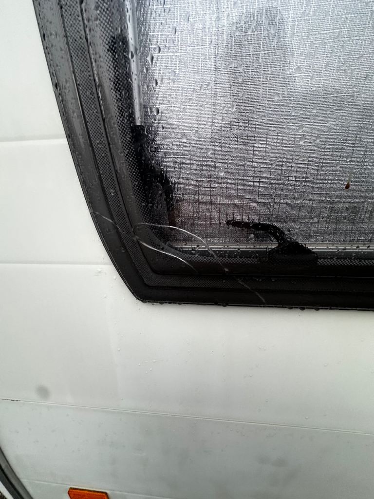 One rear window is cracked but it has no effect on the leak or other problems, the battery needs to be replaced