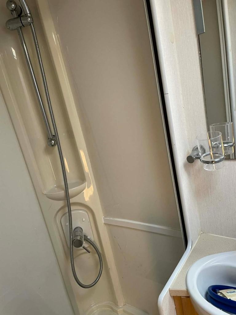 TV; TV Aerial; Central Heating; CD Player; Alarm; Microwave; Cooker; 12V Lighting; External Side Lockers; Blinds; Grill; Mains Hookup; Separate Shower; Sink; 240V Lighting; Oven; AM/FM Stereo; Hand Washbasin