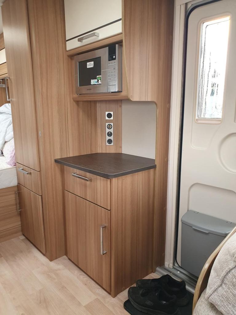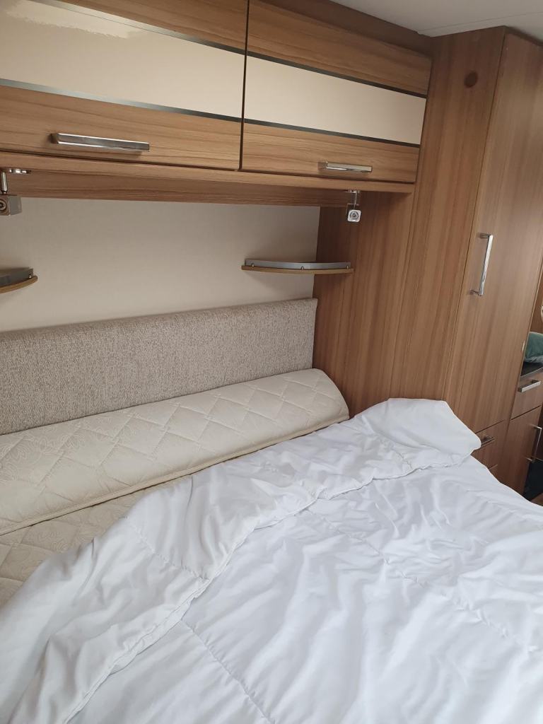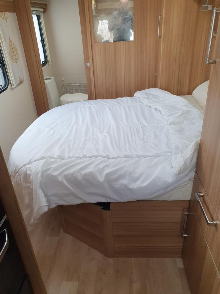 Sunroof; Central Heating; Microwave; Fixed Double Bed; Cooker; 12V Lighting; Blinds; Grill; Separate Shower; Double Glazing; Mains Hookup; Oven; Sink; AM/FM Stereo; Hand Washbasin