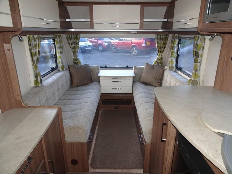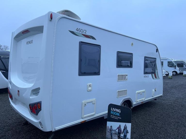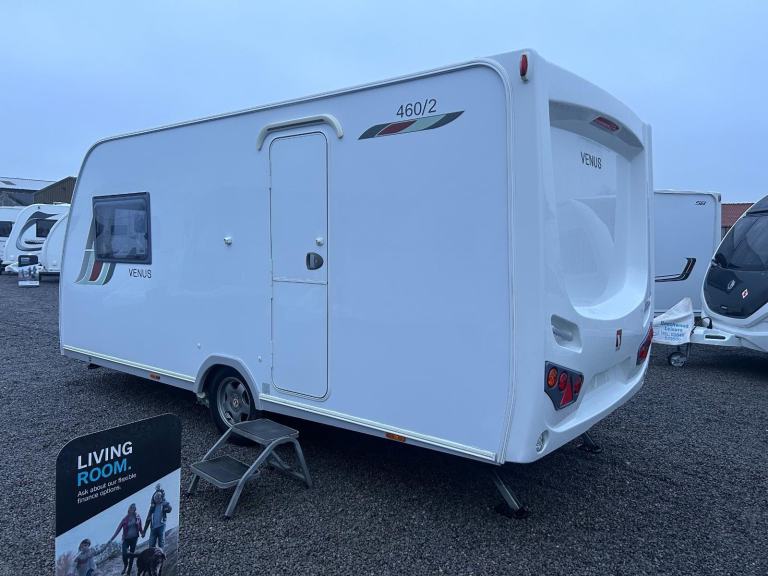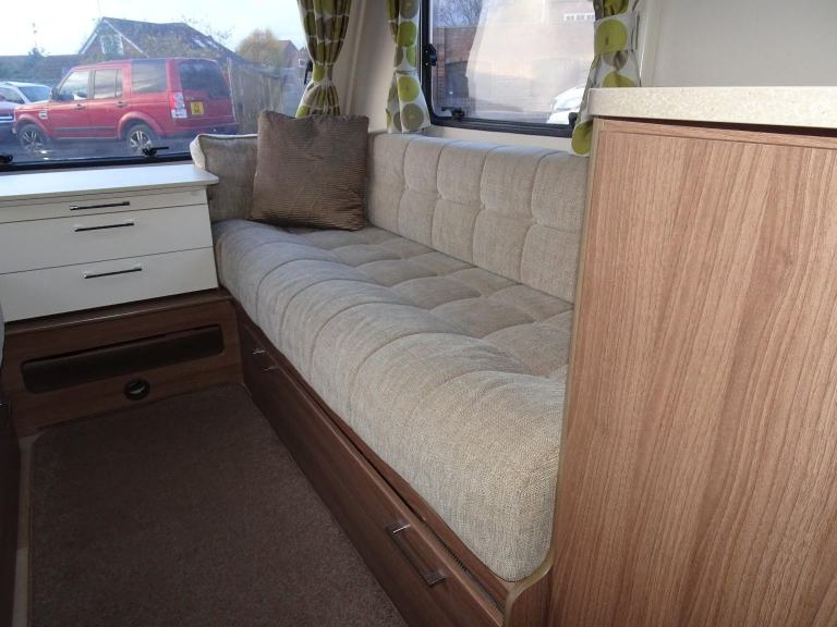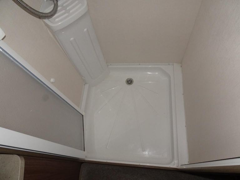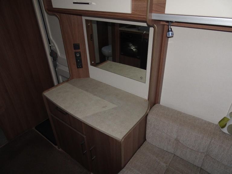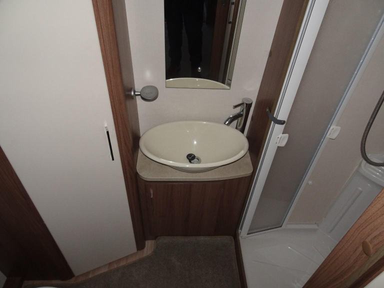 Complete end dressing room including separate shower enclosure, vanity unit, wardrobe and toilet - central nearside dresser - central offside kitchen - 2 x singles / double at the front - one of the most lightweight and spacious two berth models on the market, comfy, cosy, comfortable and cute - in brilliant condition both inside and out.