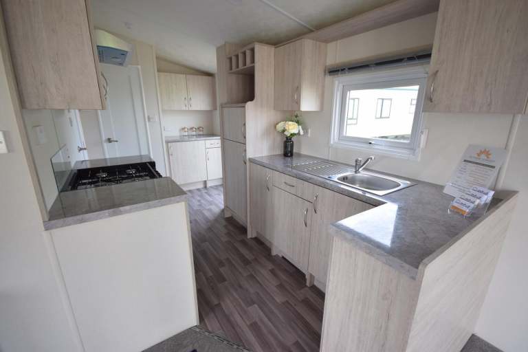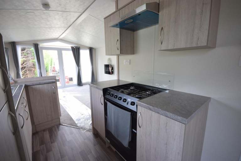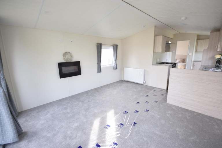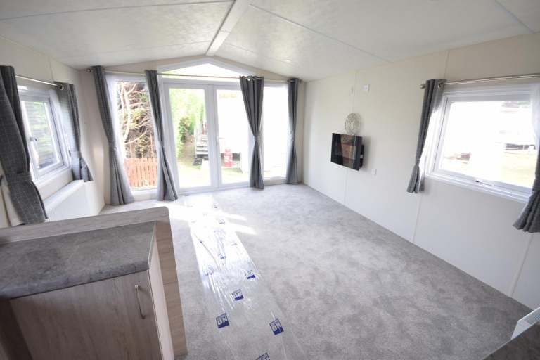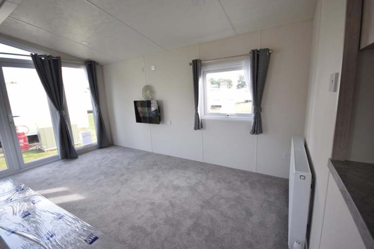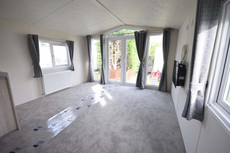 This beautiful lodge benefits from fully fitted kitchen and bathroom, appliances included, beds and mattresses, leaving space in the lounge for your own suite, or choose one of our furniture packs for only £3,000 (3 piece suite + matching dining).