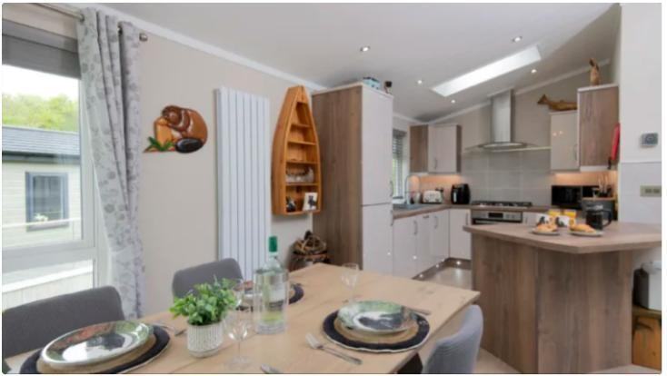 Inside, you’ll find a bright and comfortable open-plan living space with a fully fitted kitchen complete with integrated appliances including a dishwasher and washing machine, making self?catering breaks effortless. The lounge area features a TV and opens out onto a generous private deck – complete with outdoor furniture and your own hot tub - perfect for unwinding amid the countryside scenery.