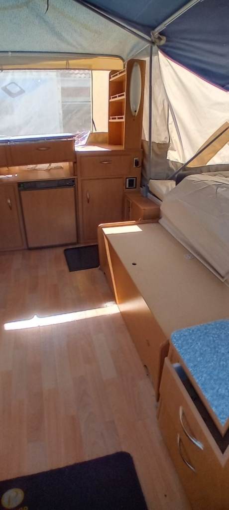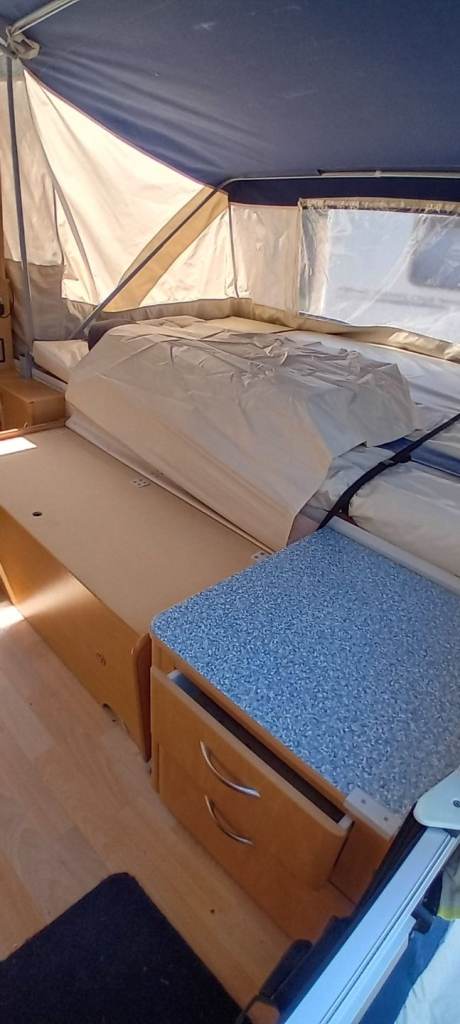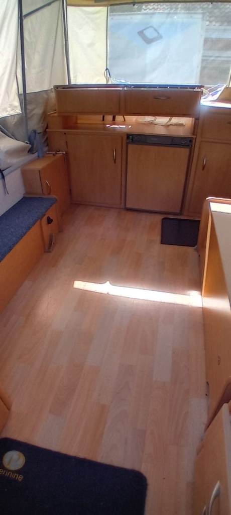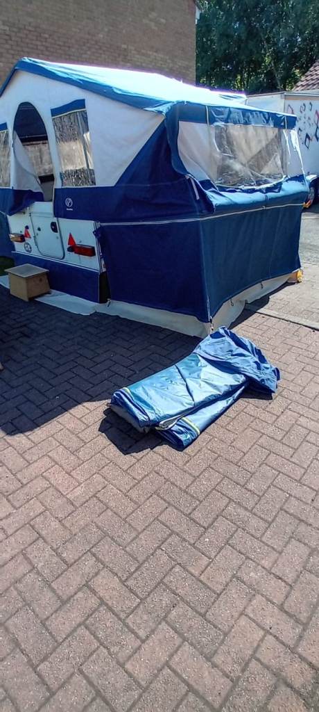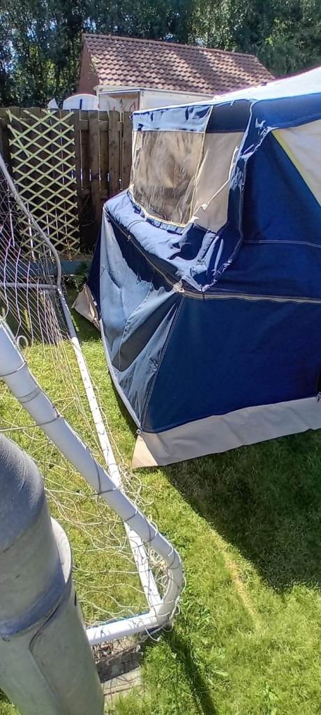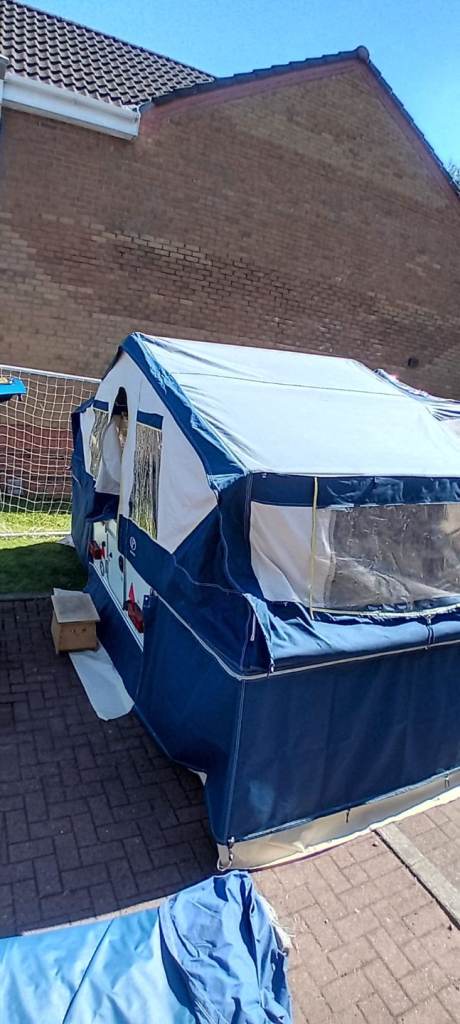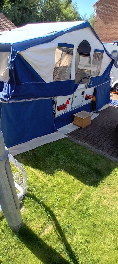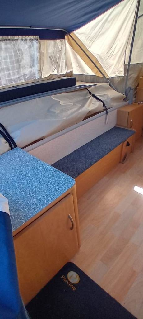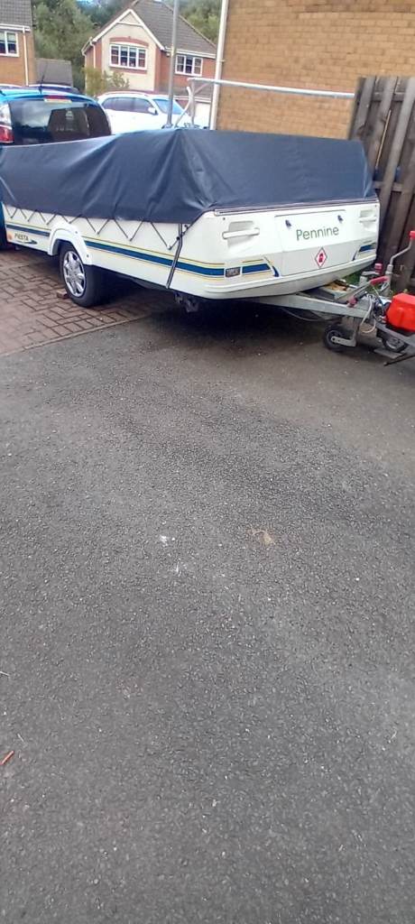 Pennine fiesta 4 berth with awning 3 way fridge, gas hob /grill water, TV, microwave, electric, portable toilet/tent, fantastic condition, new tyres/battery, side skirts underbed storage, chassis respray, 750kg, no rips/damp, ideal budget camper, South Lanarkshire