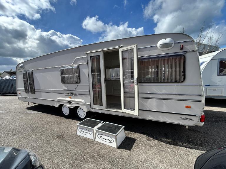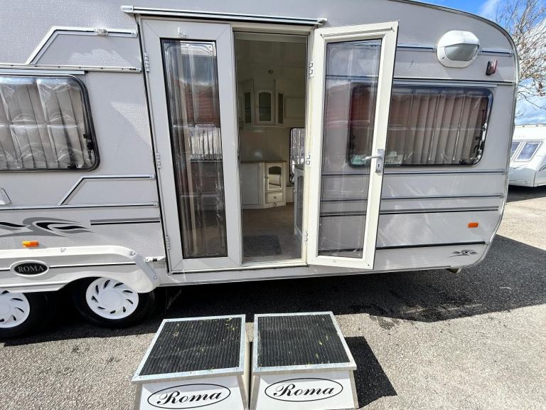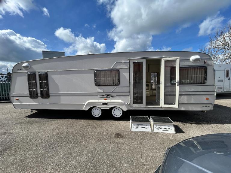 02 ROMA GT , this rare and discontinued caravan is in exceptional condition and we are proud to have it coming our way this weekend has large front end bedroom with loads of storage and closing french doors , bespoke Roma steps leading through the patio doors into the large living room with ample space , to the left is a gas hob oven and cooker leading through the sliding French doors into the magnificent bedroom , this van truly is a thing of Beauty and will be on site in our possession this weekend WATCH THIS SPACE serous enquiries only !