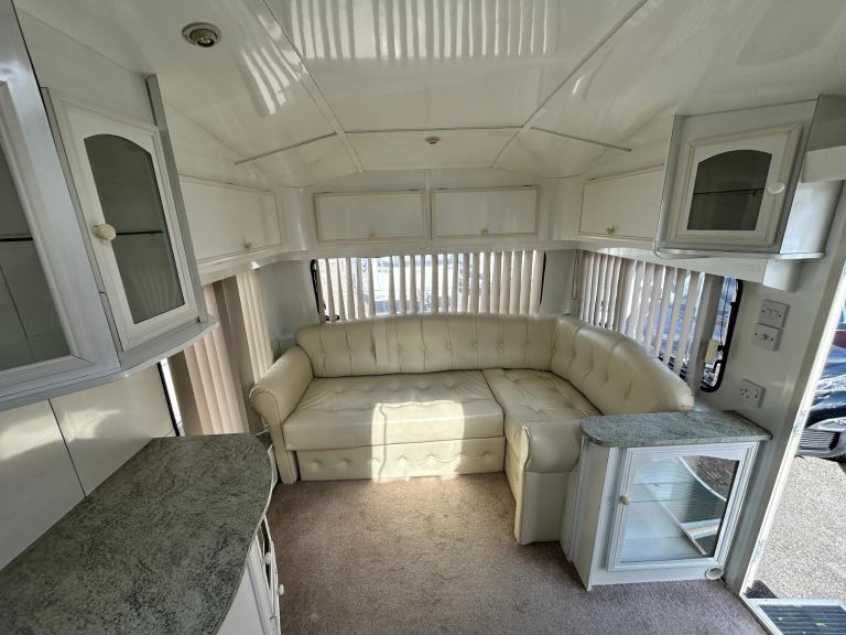 Sunroof; TV Aerial; Fixed Double Bed; Cooker; External Side Lockers; 12V Lighting; Blinds; Grill; Double Glazing; Mains Hookup; 240V Lighting; Oven; Round Seating Group