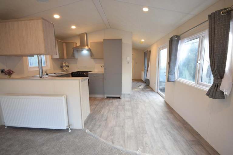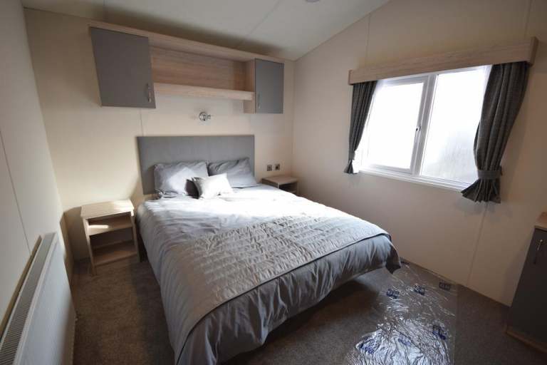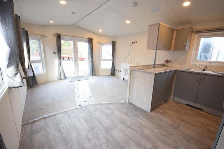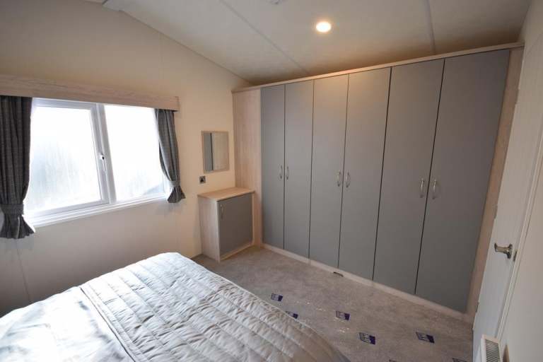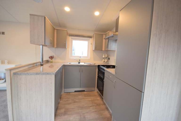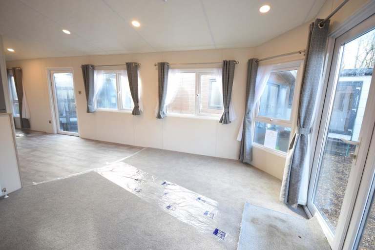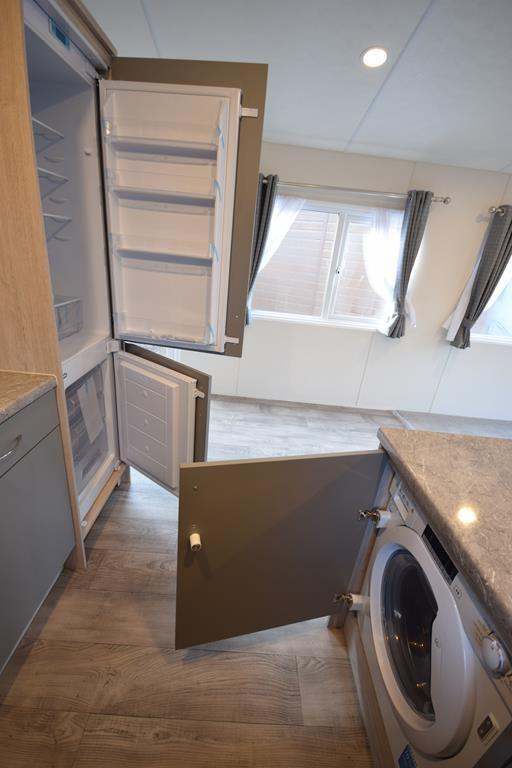 The modern kitchen is impressive with lots of work space and cupboards, integrated large fridge freezer, dishwasher, and oven & hob with extractor fan. The bathroom and master bedroom doors are extra wide to allow for wheelchair access. If you have any questions or you would like to arrange a visit to our showground, please don’t hesitate to give us a call or send us a message – we always reply the same day!