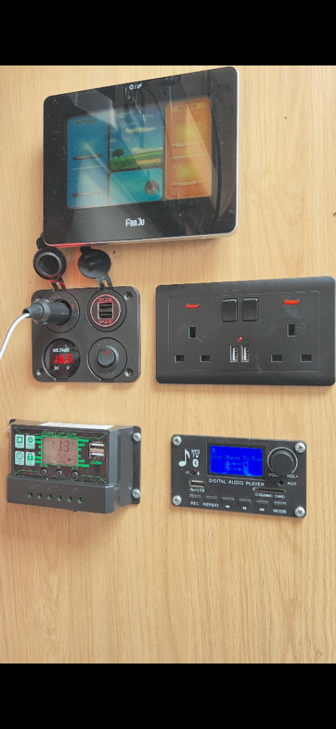 I’ve rewired most of it with new fittings including more plug sockets with USBs. The water pipes have been replaced with new taps, heater & water pump. The shower is original & works fine. There’s also a water tank with ball cock underneath for static vanning with the external wire connecting for normal mains.