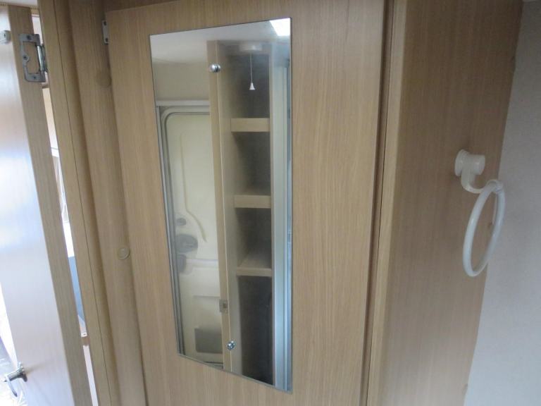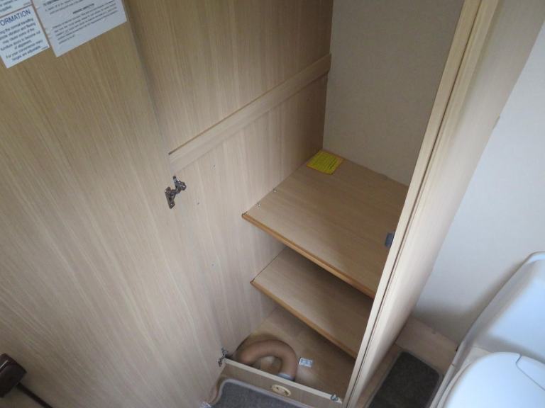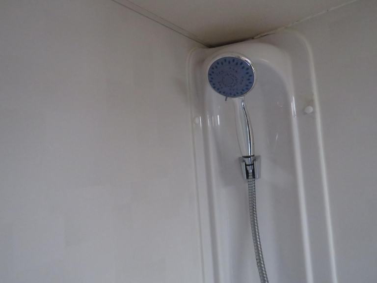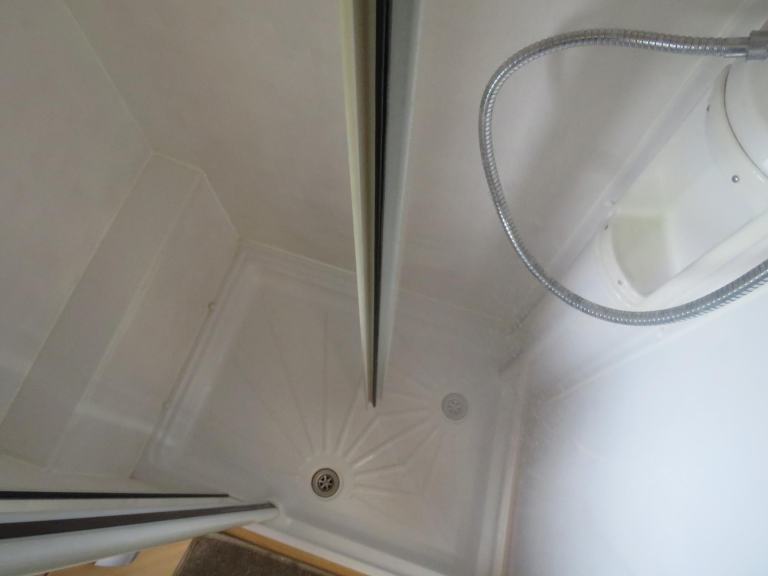 The full end bathroom has a separate shower, electric flush cassette toilet and vanity unit with hand wash basin. Also a large wardrobe is located in the bathroom.