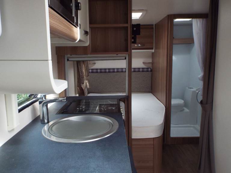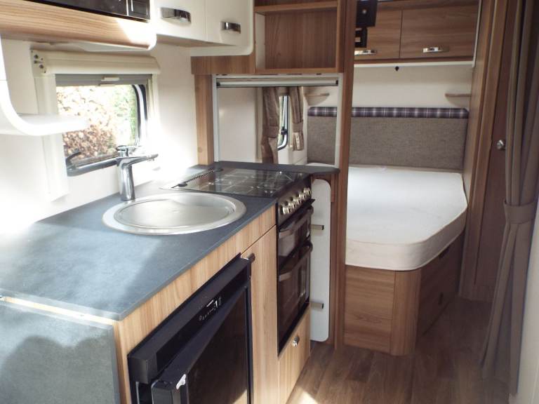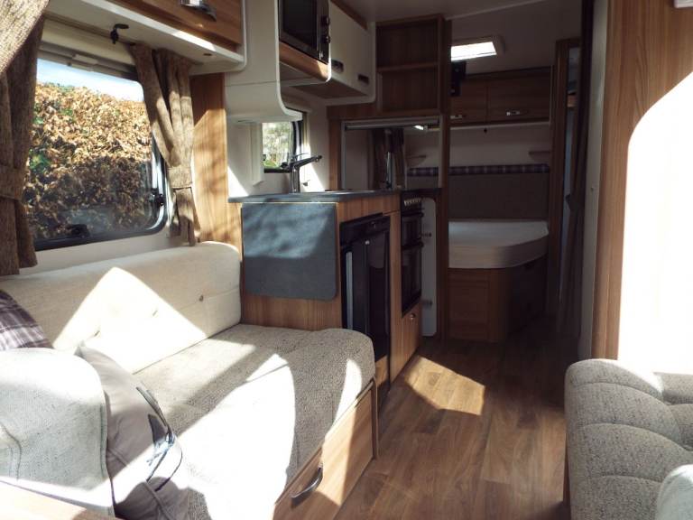 Four berth with fixed double bed. Fully serviced. Motor mover. Excellent condition. All manuals/instructions. Full gas cylinder. Low mileage and only toured in Scotland.