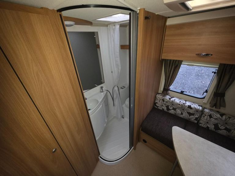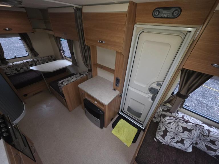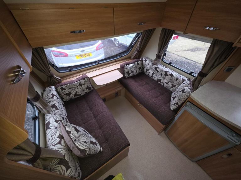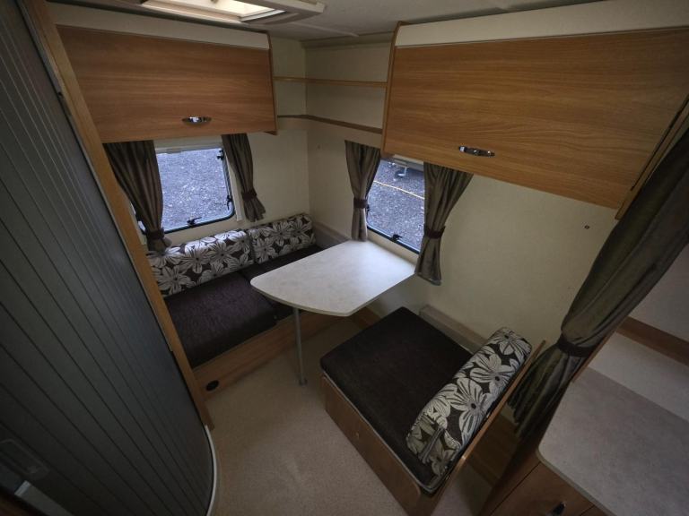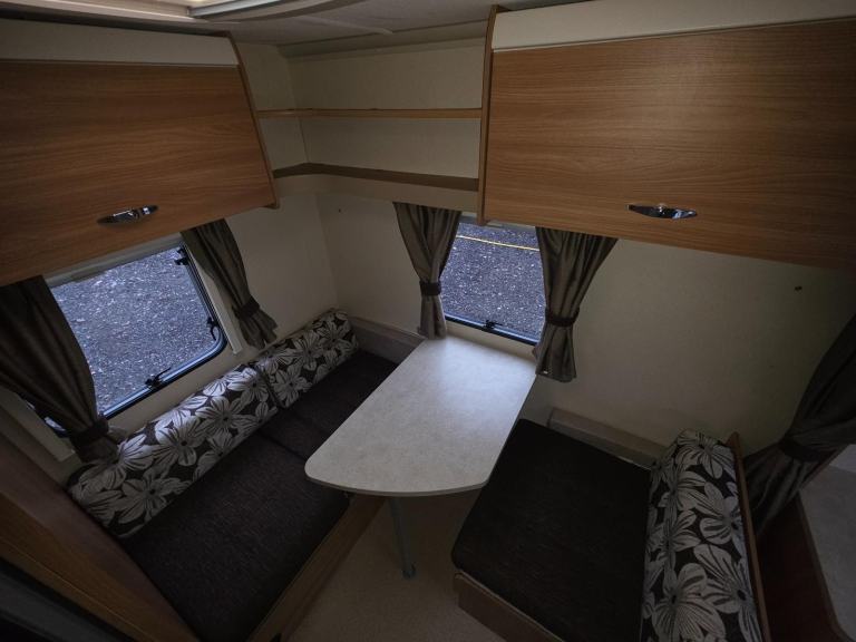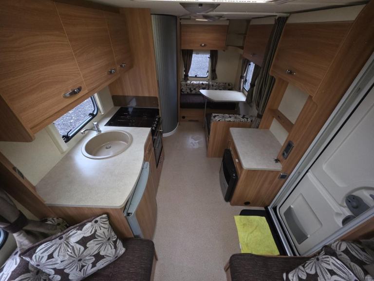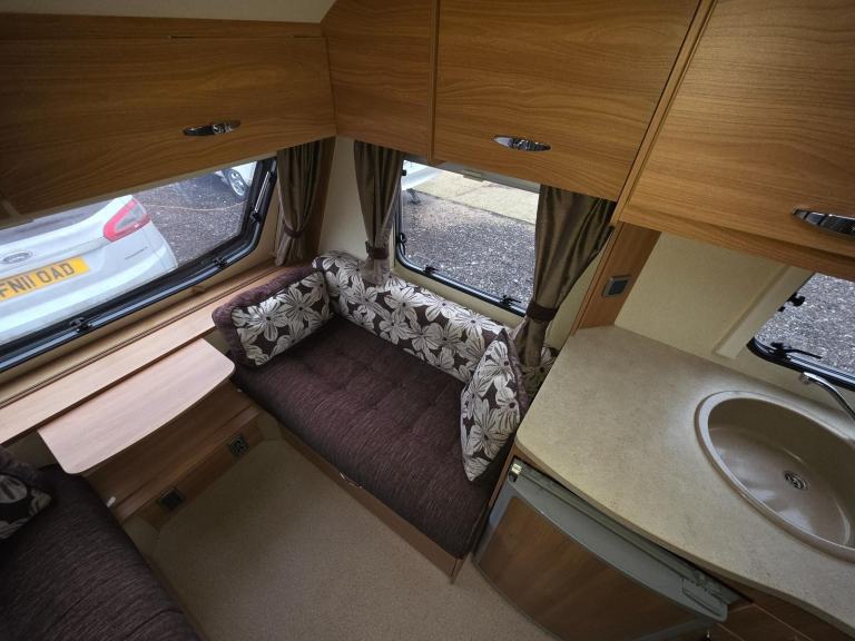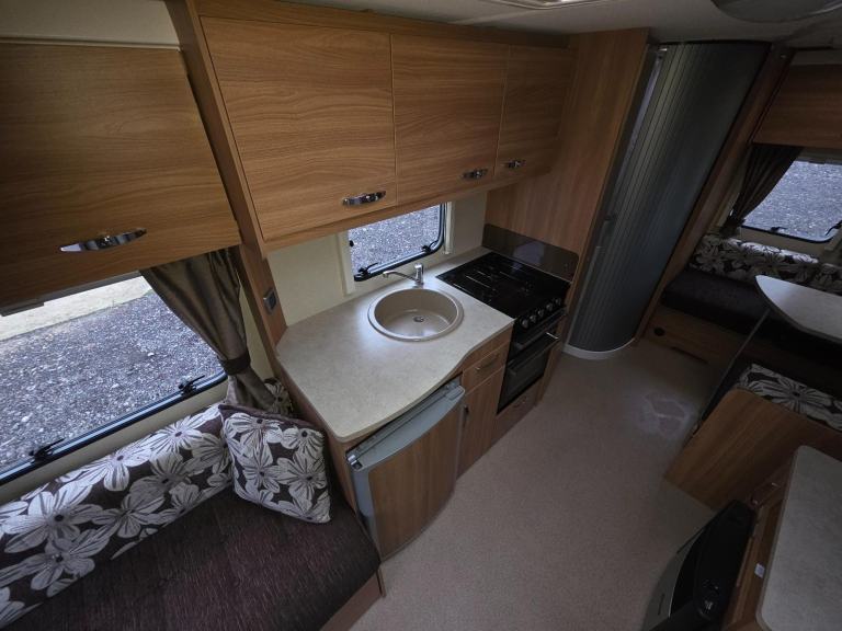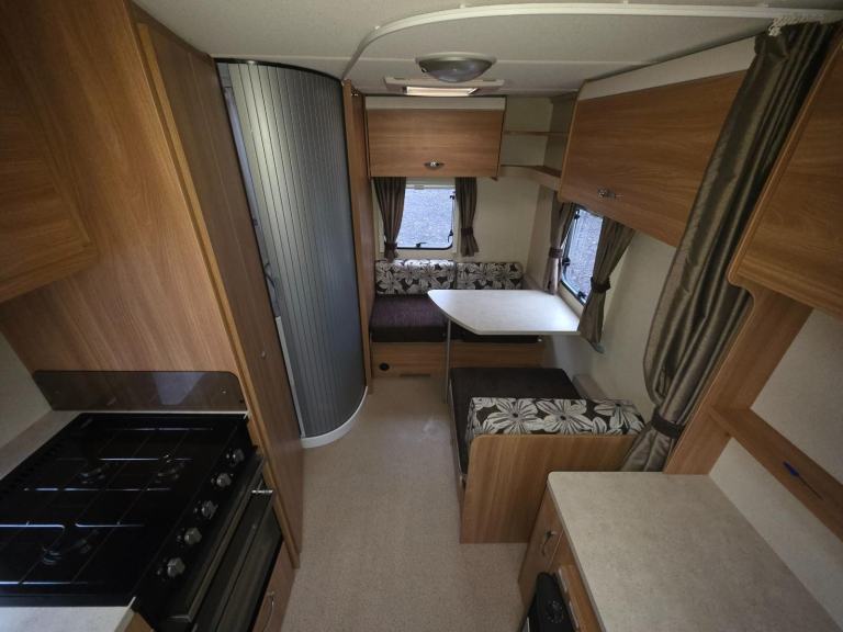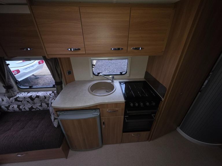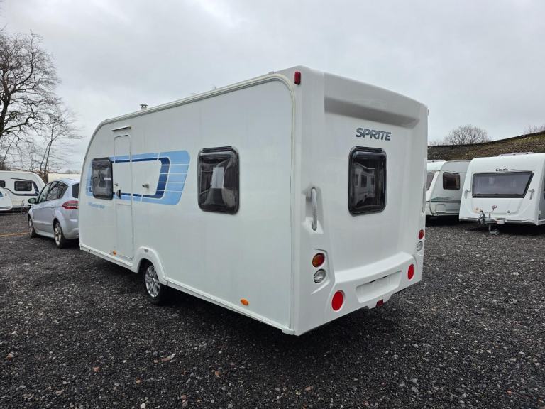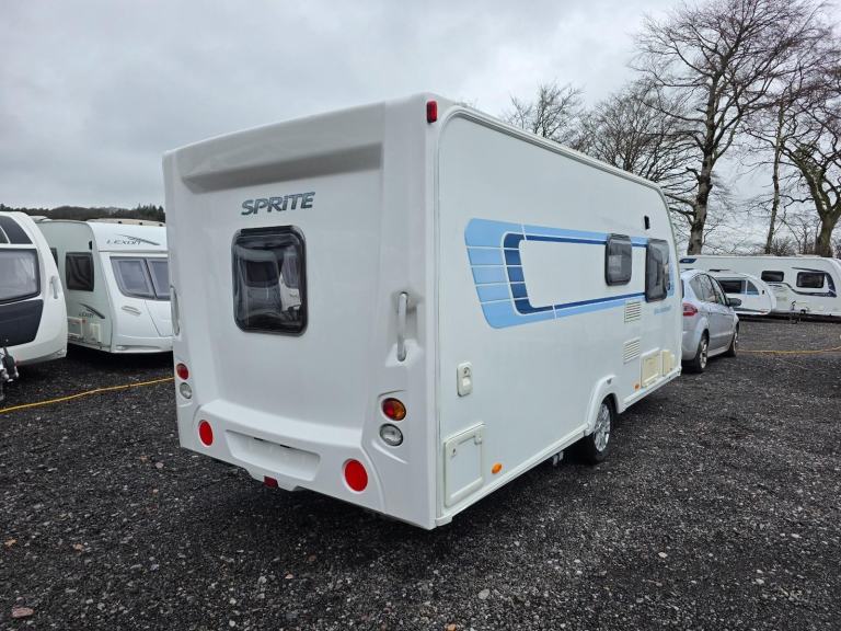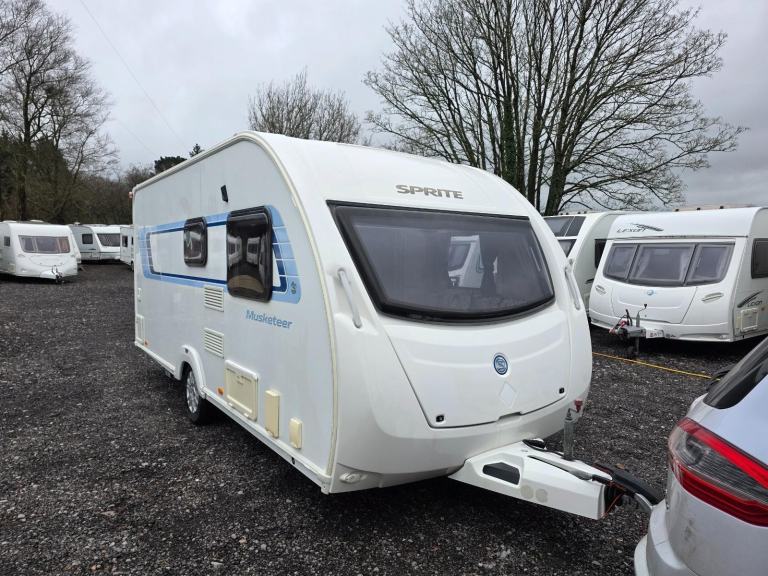 Sprite Muskateer 4 berth 2012 caravan, in lovely Condition inside and out. This caravan is fully ready to take camping, it has lots of features and extras what you would expect from a high spec caravan such as this. It includes: hot and cold water, full central heating, full screens and blinds, full oven and grill, three-way fridge/freezer, 240–12 V electricity, HEKI rooflight, Alko Antisway towbar and much more.This caravan comes with a full