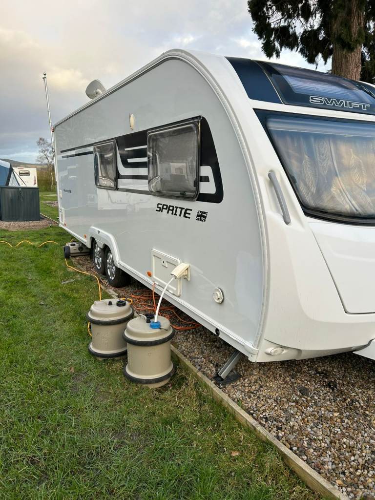 Sprite Quattro Fixed Bed Twin Axle Caravan 2015. Great condition, littele used, New mattress, Roller Blinds, Currently sited at Thirsk, Great condition, clean, non smokers, single axle motor movers.