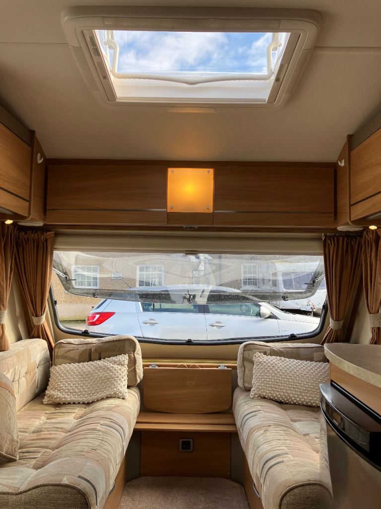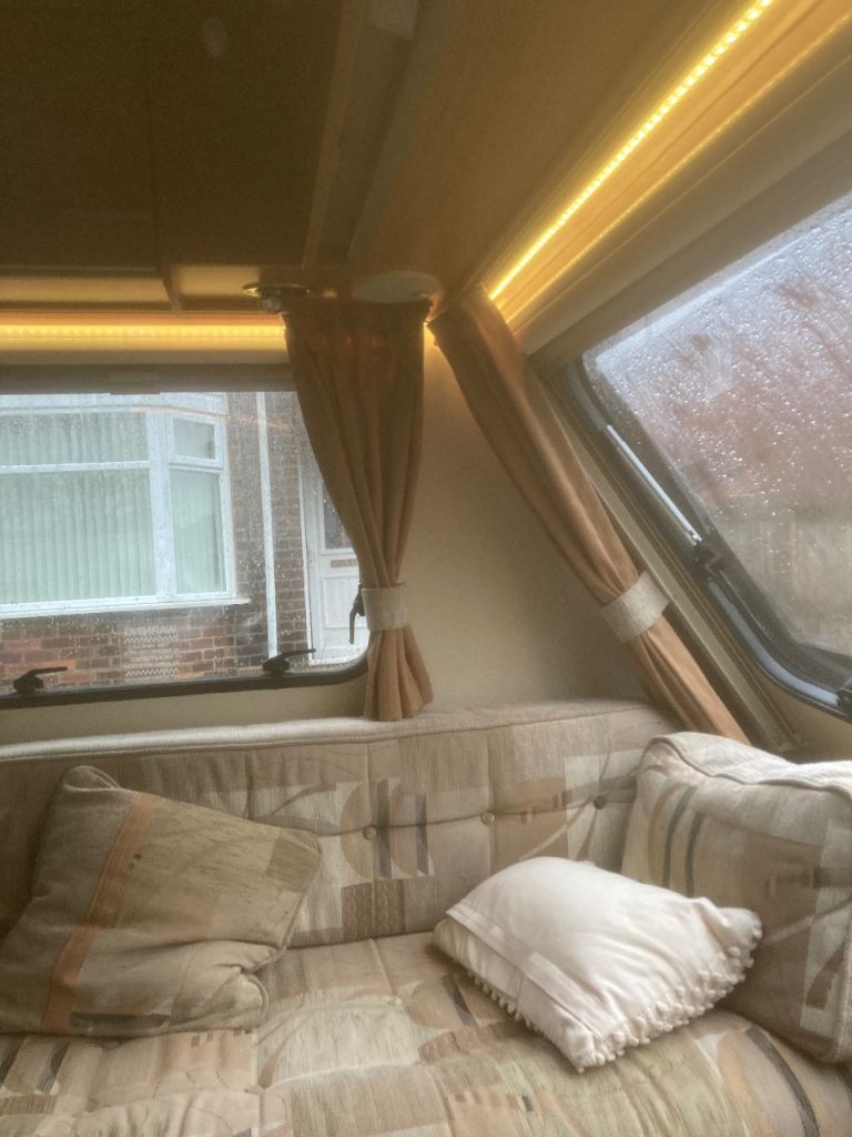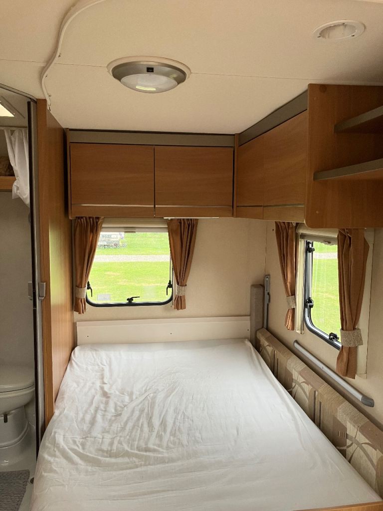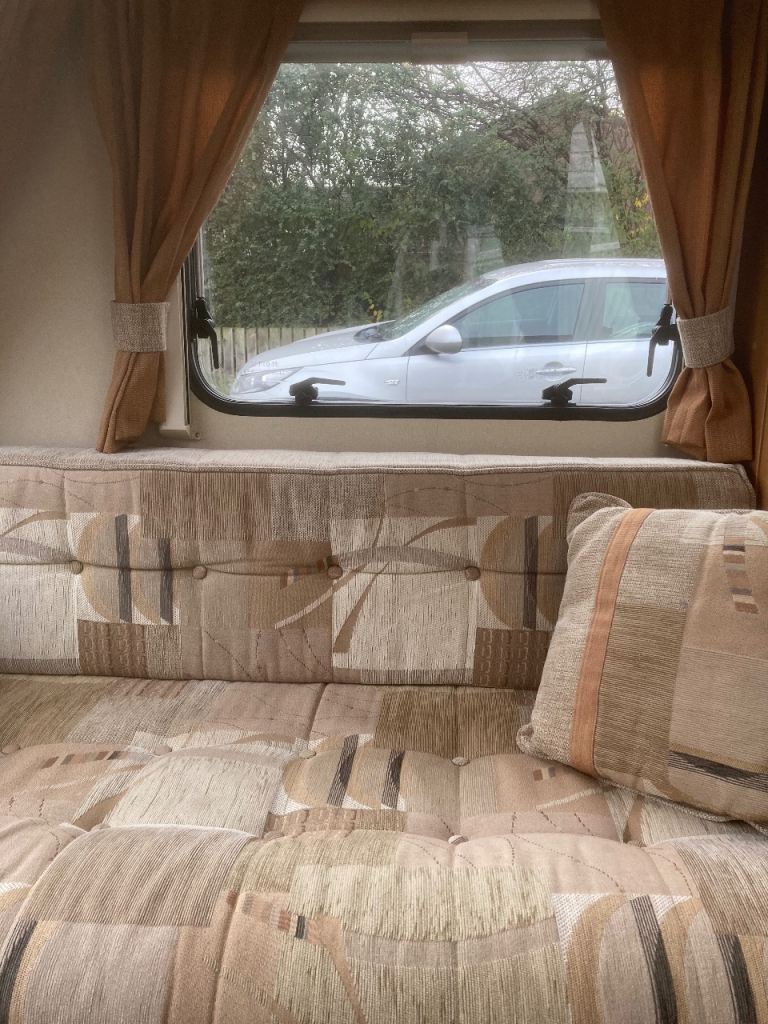 This is a 5 berth touring caravan with a fixed double bed, can have a bunk above if needed, with 2 singles at the front, which can be made into another double. It has a fridge which can be run off electric, gas or battery. Oven with 4 hobs and grill. Front has one large window, leaving in plenty of light, can be opened up to leave plenty of fresh air in the summer, whilst sat on the front double seating. It has a shower room, along with a wash basin and a thetford cassette toilet, under basin storage as well as above the shower. It also benefits from LED strip lighting, Radio/ CD, hot/ cold running water, Truma air heating, tv aerial, large heki roof window, LED awning light, new battery and lots of storage areas and large wardrobe The caravan is lightweight at 1,050 kgs, great condition, been very well looked after and regular serviced, new carpets throughout and very clean. Any inspection welcome, there is no damp and no soft spots. Selling due to upgrade. Please note I am a private seller, it defaulted to trade and I cannot change. £5,495 ono